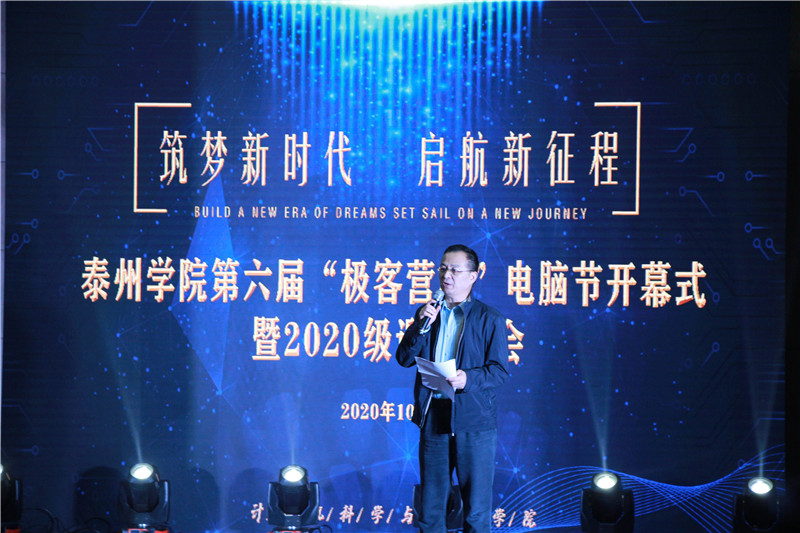 10月28日晚,“筑梦新时代、启航新征程”bat365在线中国官网登录入口第六届“极客营杯”电脑节开幕式暨计算机科学与技术学院2020级迎新晚会在图书馆负一楼拉开帷幕。校党委常委、副校长鲁学军出席本次活动,教务处处长杨俊林宣布第六届“极客营杯”电脑节开幕,计科院院长崔宝同致辞。教务处、学工处、团委、计科院相关负责人,嵌入式合作企业代表,计科院2020级新生及各院系师生代表400余人参加了本次活动。
