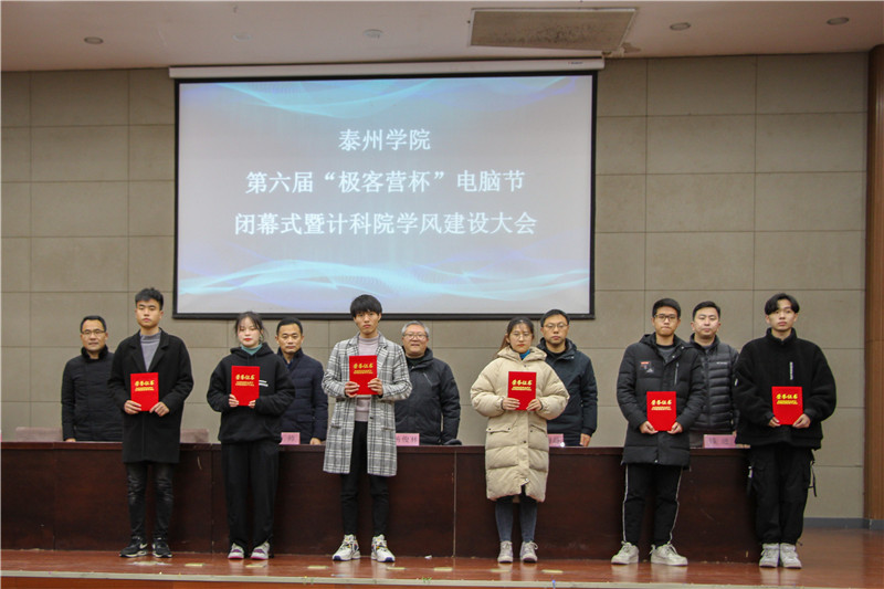 12月29日晚,bat365在线中国官网登录入口第六届“极客营杯”电脑节闭幕式暨计科院学风建设大会在图书馆负一楼举行。教务处、学工处、团委、计科院相关负责人,电脑节各项比赛的获奖选手,计科院部分学生代表参加了此次活动。