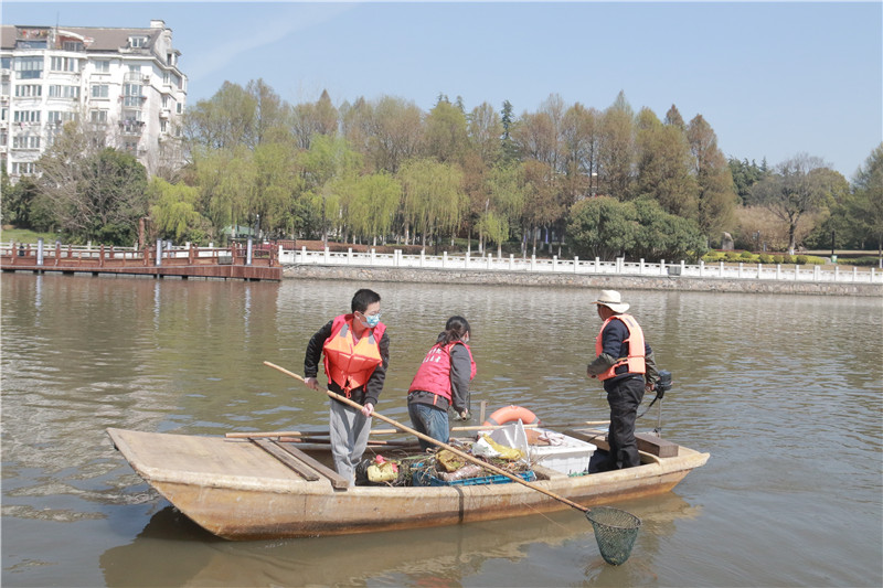 早上9时,志愿队伍来到凤城河始河道。相关负责人讲解了简单的落水急救知识,协助志愿者穿戴好救生服。志愿者代表在专业环卫师傅的指导和陪同下,对河道周边的垃圾开展清理,他们手持捞网,分工合作、互相配合,将漂浮在河道中的白色垃圾、塑料瓶罐、树枝树叶等杂物捞起。打捞工作结束后,志愿者队伍还向周边居民和垂钓者宣传环保理念,倡导大家要把垃圾分类放入垃圾桶中,不要随意丢弃。
