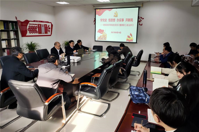4月15日,教育科学学院在行政楼D2201会议室,开展“学党史、悟思想、办实事、开新局”党员学习暨教职工政治学习活动。学院院长程广文,党总支副书记仲宁,党总支副书记、副院长马永明,副院长马春亚、蔡俊,全体教职工参加学习。