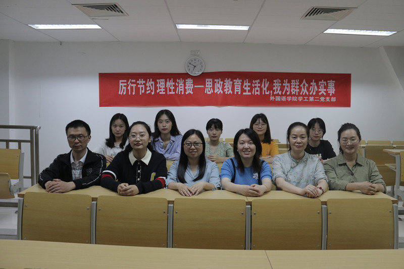 为深入开展党史学习教育,扎实推进“我为群众办实事”实践活动,6月3日晚,外国语学院学工第二党支部党员师生在教学楼A1407教室开展“厉行节约、理性消费——思政教育生活化,我为群众办实事”主题活动,60余名师生代表参加。
