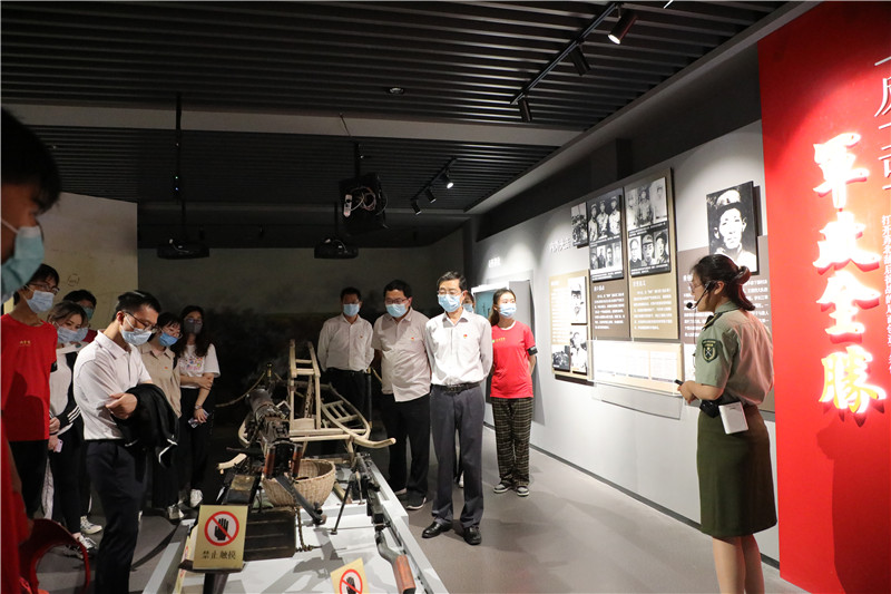 在郭村保卫战纪念碑下,面对鲜红的党旗,大家重温入党誓词、重忆入党初心。大家共唱陈毅元帅作词的歌曲《保卫郭村》,走进纪念馆的展厅,认真聆听讲解,仔细阅读图文影像资料,深入了解抗日战争时期那段曲折的革命历程,聆听东进序曲,传承“东进精神”。