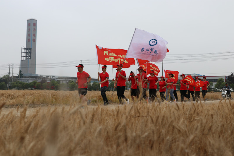 薪火传递,彰显泰院青春力量。邓友祥率领健步走师生党员步行2.5里到达郭村保卫战纪念馆,接力组师生代表分3组完成了7.1公里的接力跑,重走了郑少仪当年送情报的线路,以奔跑追寻历史足迹,传递红色情报,传承红色文化。
