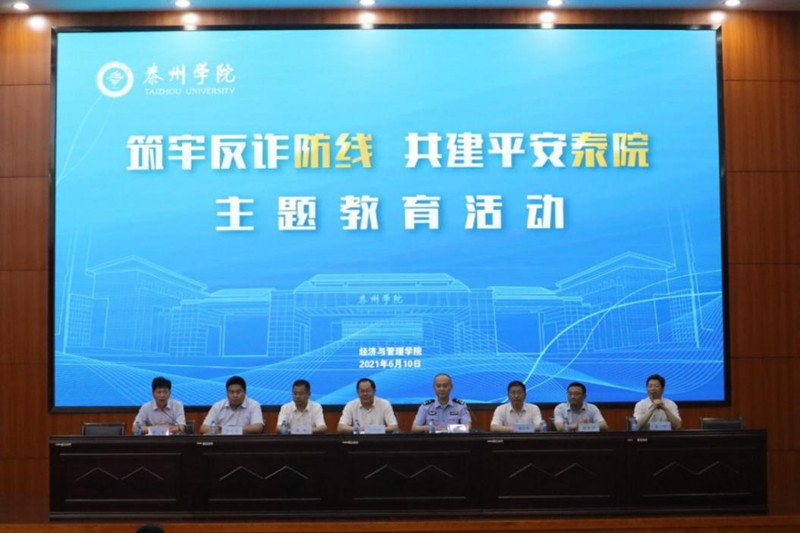 为践行“我为群众办实事”,有效防范电信网络诈骗案件发生,切实维护广大师生财产安全,提升学生提防电信网络诈骗意识,6月10日下午,学校在D1216开展“筑牢反诈防线,共建平安泰院”主题教育活动。校党委副书记、校长徐向明出席活动并讲话。泰州市公安局反诈中心教导员二级警长褚峰,学校党委常委宣传部、教务处、学工处、保卫处、经济与管理学院负责人及教师、学生代表参加了活动。