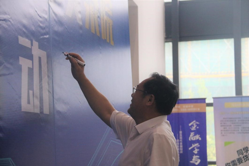 与会师生共同观看反诈教育视频,与反诈中心干警进行了防诈骗知识互动问答。随后,师生共同作反诈宣誓,并在签名墙签名。
