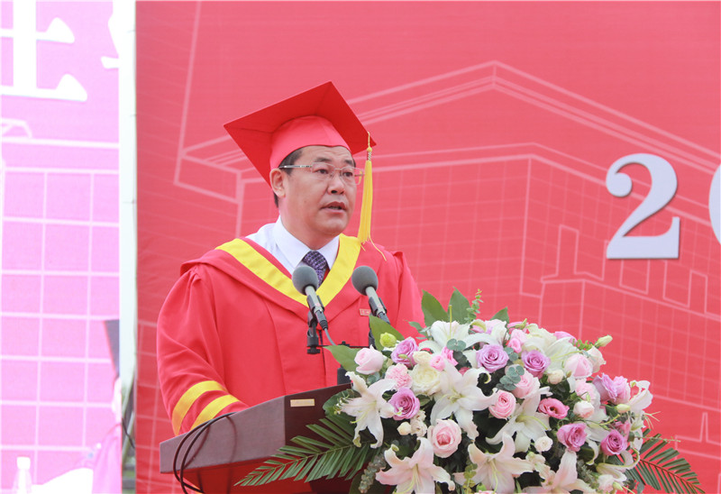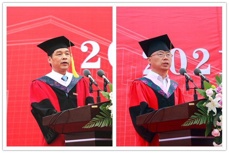 外国语学院胡瑞玉同学作为毕业生代表发言,她分享了成长历程,表达了对母校的不舍和感激,并代表全体毕业生承诺将秉承“敦尚行实,明体达用”的校训,以聪明才智贡献国家。数理学院管训贵教授作为教师代表发言,他为毕业生送上真挚的祝福和嘱托,希望同学们不断地学习、再学习,调整好自己,适应新的工作和生活;永不放弃上进、健康、闪光的心,抓住时机,努力奋进。