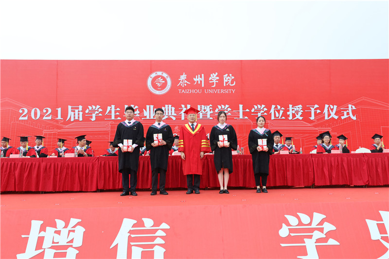 在毕业典礼环节,鲁学军宣读了《bat365在线中国官网登录入口关于准予2021届王威涛等2032名学生毕业的决定》《bat365在线中国官网登录入口关于表彰2021届优秀毕业生的决定》;校领导为包括5名印尼留学生在内的毕业生代表颁发毕业证书,为获得省、校优秀毕业生荣誉称号的学生代表颁发荣誉证书。