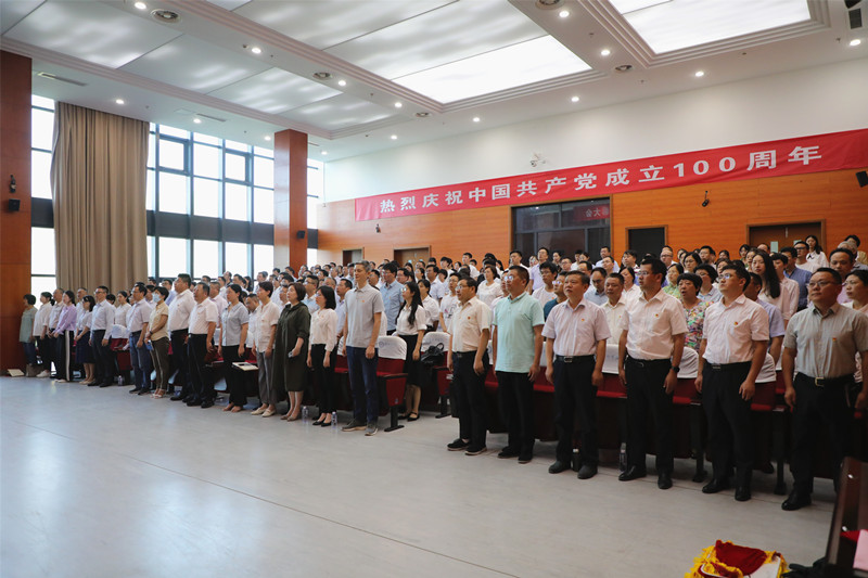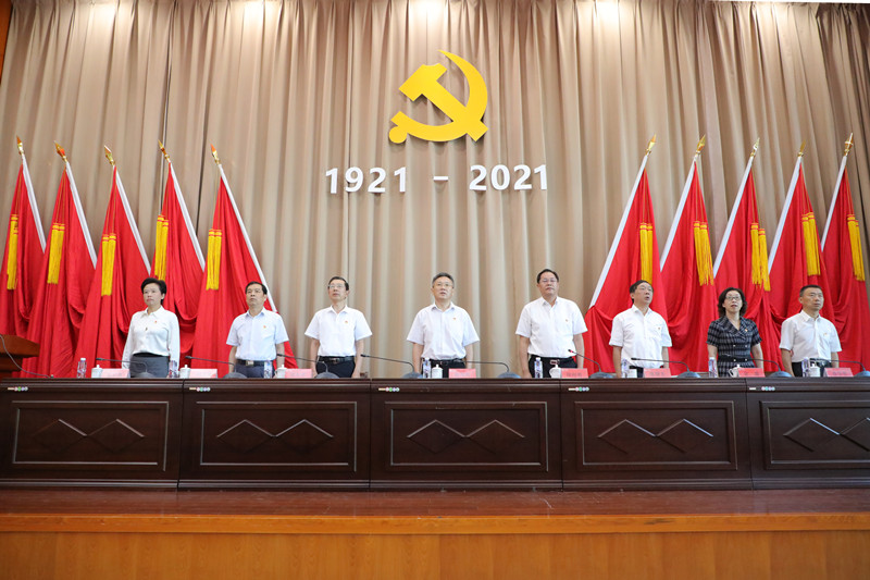 6月30日下午,在庄严的国歌声中,bat365庆祝中国共产党成立100周年表彰大会在行政楼D1216拉开帷幕。全体在泰校领导,校党委委员、纪委委员,获表彰单位代表和个人,各级人大代表、政协委员,校各民主党派、侨联、欧美同学会和无党派知识分子联谊会负责人,各二级单位主要负责同志,专职组织员,二级党组织委员会全体委员、党支部书记、马克思主义学院教师、离退休党员代表及师生党员代表近200人参加会议。会议由党委副书记、校长徐向明主持。