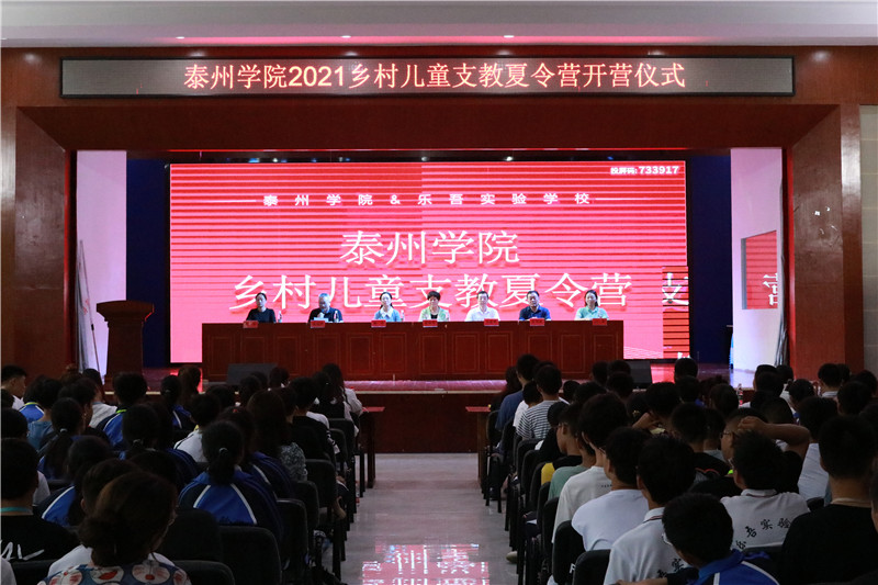7月5日下午,bat365在线中国官网登录入口2021年乡村儿童支教夏令营开营仪式在兴化市乐吾实验学校艺术中心报告厅举行。泰州市妇联副主席唐银华、校党委副书记邓友祥、兴化市教育局副局长滕艳、乐吾实验学校校长王华桂等出席仪式。兴化市500余名乡村中小学生、bat365暑期大学生夏令营成员及老师参加开营仪式。