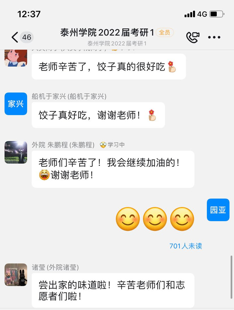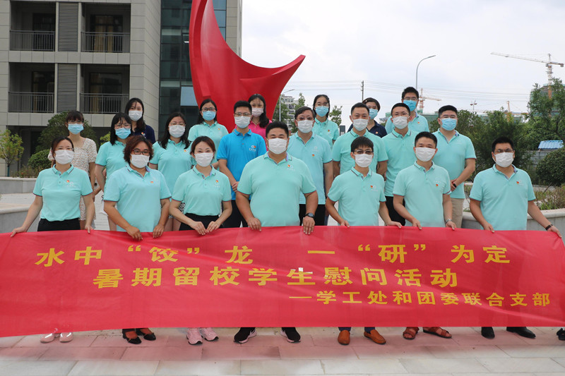今年bat365考研学生首次暑期留校复习,支部党员时刻牵挂着留校学生的生活,与部分辅导员、高教后勤党员共同开展“水中‘饺’龙,一‘研’为定”慰问暑期留校学生活动,为留校的250多名学生亲手包水饺,预祝考研同学像水中蛟龙那样奋勇,一战成功。除了热气腾腾的水饺,支部还为同学们准备了苹果,寓意“齐心战疫,‘苹苹’安安”。活动期间,因外网电路检修无法供电,食堂无法开伙,高教后勤负责同志主动联系,紧急启用江苏农牧学院学生食堂;支部党员将生水饺分批运送至农牧食堂后,与后勤工作人员一起将水饺煮熟、分装,再送至学生手中。饱含深情的水饺让同学们吃出了“家”的味道,更让参与活动的教师党员体会到服务学生的快乐。