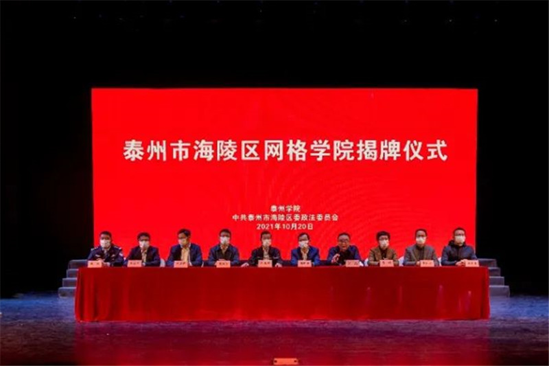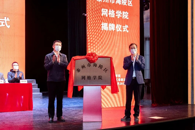 何银海和杭绘东为网格学院揭牌。海陵区网格学院的成立,标志着全区网格治理工作有了集聚资源的创新高地、前瞻视野的研究高地、充沛活力的人才高地。