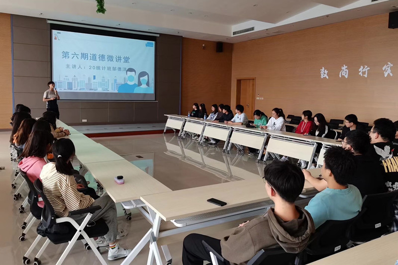 10月27日,数理学院在胡瑗讲堂开展道德微讲堂活动,由院学生会实践部部长邹德洋同学主讲,数理学院部分入党积极分子参加活动。