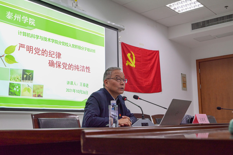 开班典礼结束后,计科院专职组织员王春进老师以“严明党的纪律、确保党的纯洁性”为题为学员们上了第一课,要求学员务必遵照《党章》要求衡量自己的思想和言行,增强自律意识,增强责任意识,增强法纪意识。
