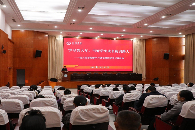 10月27日下午,校机关党委在D1216开展了“学习黄大年,当好学生成长的引路人”的专题政治学习暨党员固定学习日活动。活动由机关党委书记仲宁主持,机关党员干部和广大教师参加了此次活动。