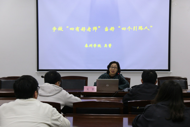 吴菁为培训班上开班课,为青年教师扣好学生管理工作的“第一粒扣子”。她以“争做‘四有好老师’,当好‘四个引路人’”为题,分别从“争做‘四有好老师’”“当好‘四个引路人’”“守好‘纪律规矩底线’”和“新时代高校辅导员工作理念和方法”四个方面提出要求。吴菁强调,班主任、辅导员要养成尊重、欣赏的教育态度,树立平等、互动的教育理念,探索、运用行之有效的教育引导方式。