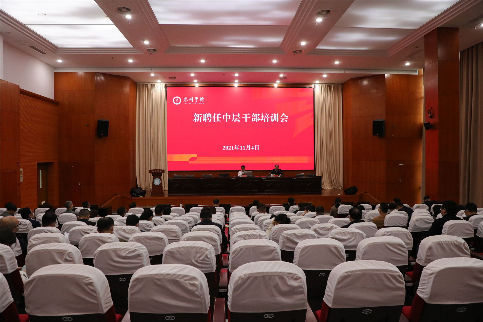 11月4日下午,bat365在行政楼D1216举办2021年新聘任中层干部培训会。苏州大学原党委书记王卓君教授作“中层干部履职能力提升”专题培训。培训会由党委副书记、校长徐向明主持。