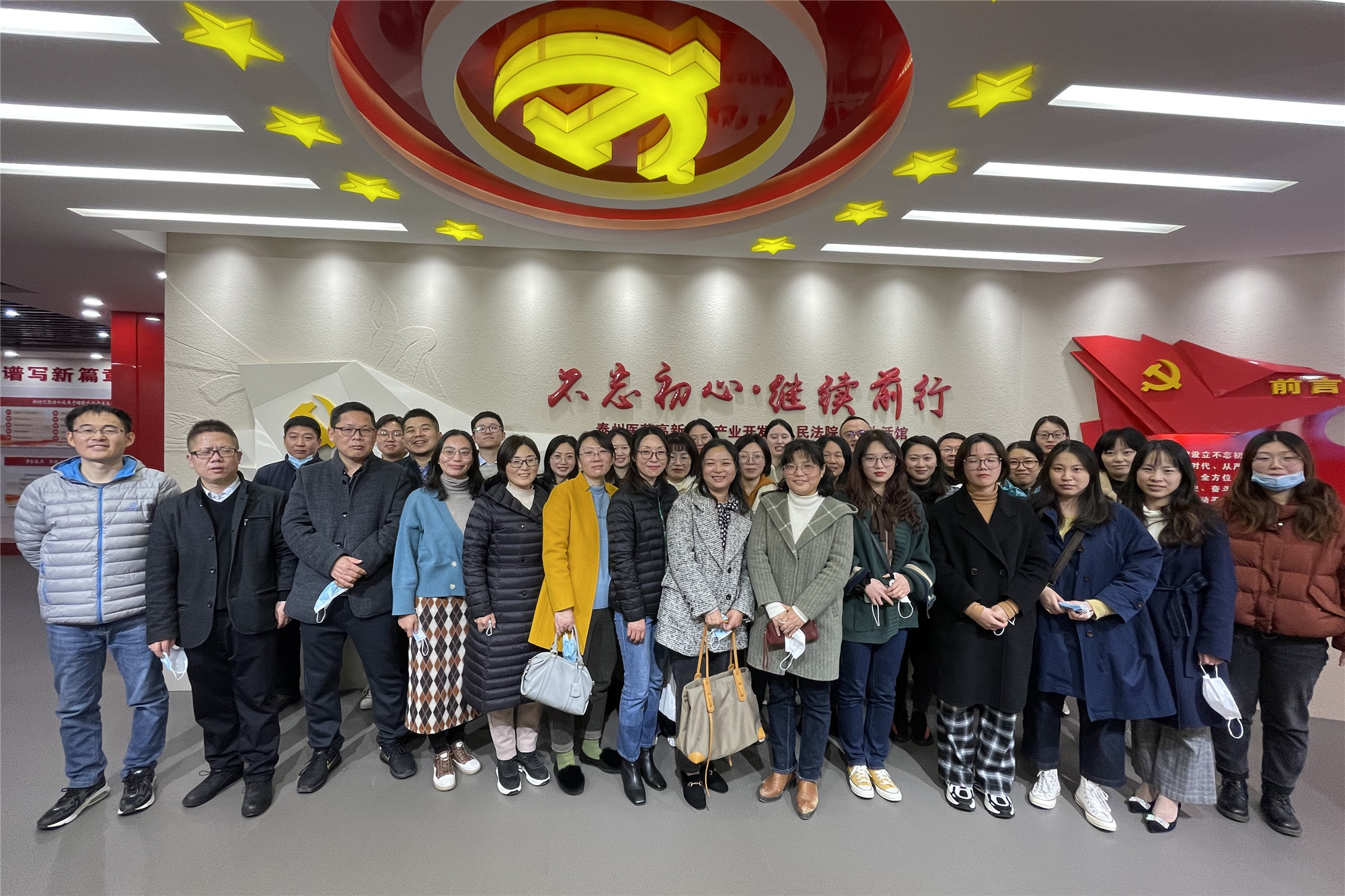 11月10日下午,经济与管理学院全体教职工到泰州市高新区法院开展“坚定理想信念、筑牢纪法底线”廉政警示教育活动。在讲解员的指引下,全体教职工集中参观了法院的百米廉政文化长廊、廉政图书馆、党员组织生活馆等场所。