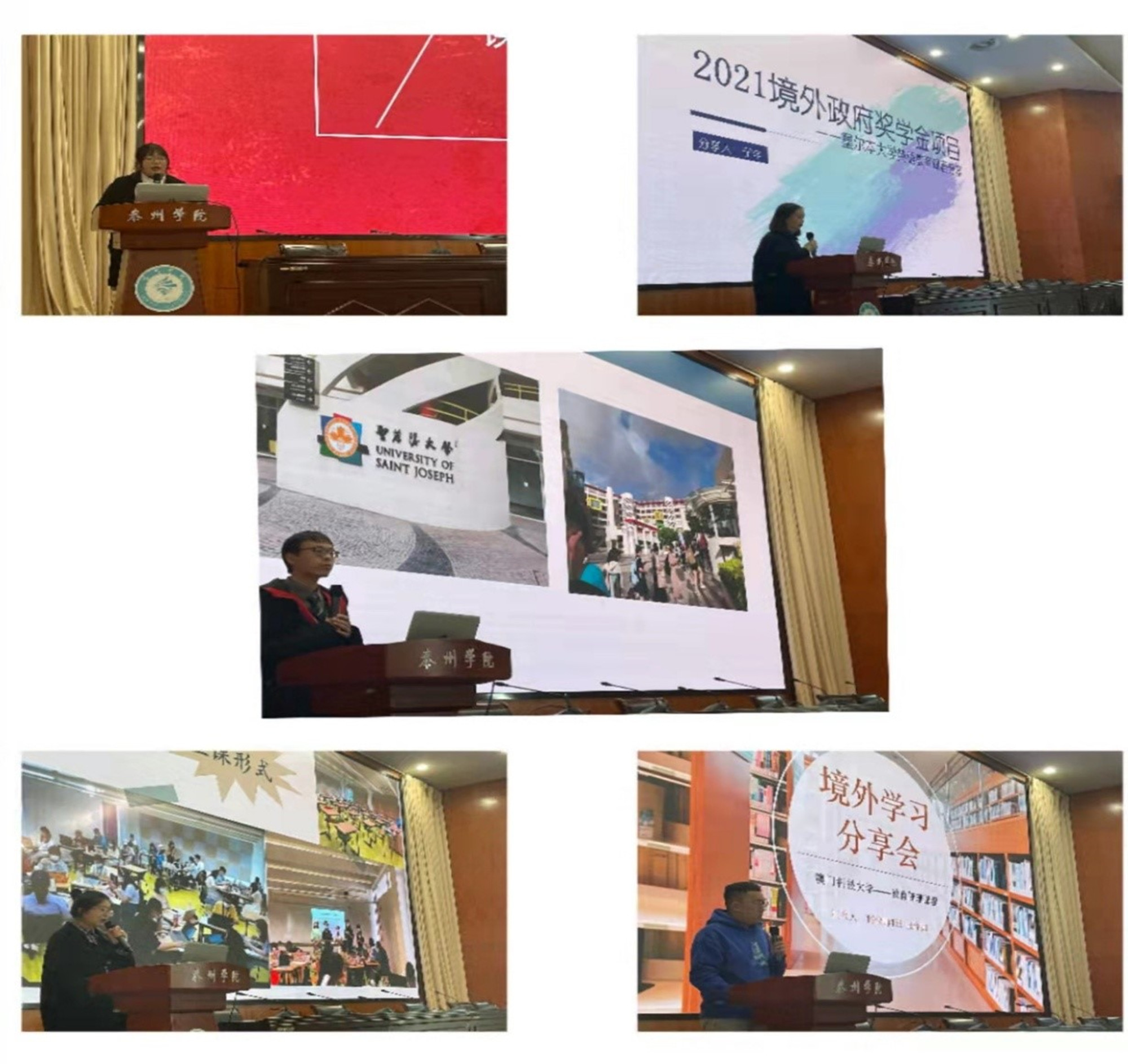 会上来自数理学院的刘琪琪、外国语学院的宁丰、周昕瑶、童铖屹、人文学院的张泽如五位同学分别进行了2021年暑期赴澳门高校学习的交流分享,展示丰富多彩的学习生活与心得体会。