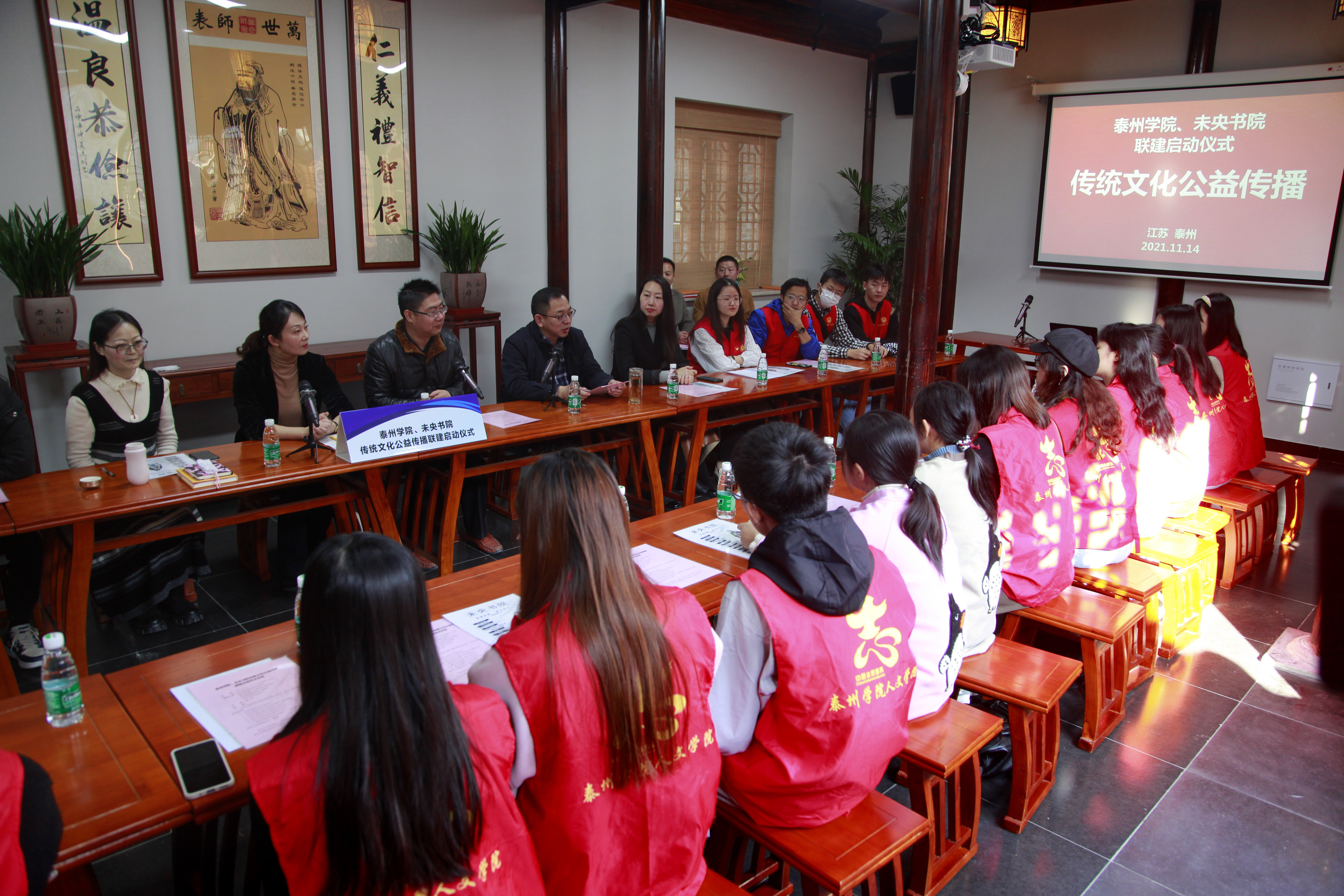 11月14日下午,bat365与未央书院传统文化公益传播联建启动仪式在稻河湾未央书院举行。校团委副书记孙菡,人文学院党总支副书记、副院长全小军出席活动,并为bat365在线中国官网登录入口社会实践基地揭牌。活动由未央书院负责人陈小勇主持。