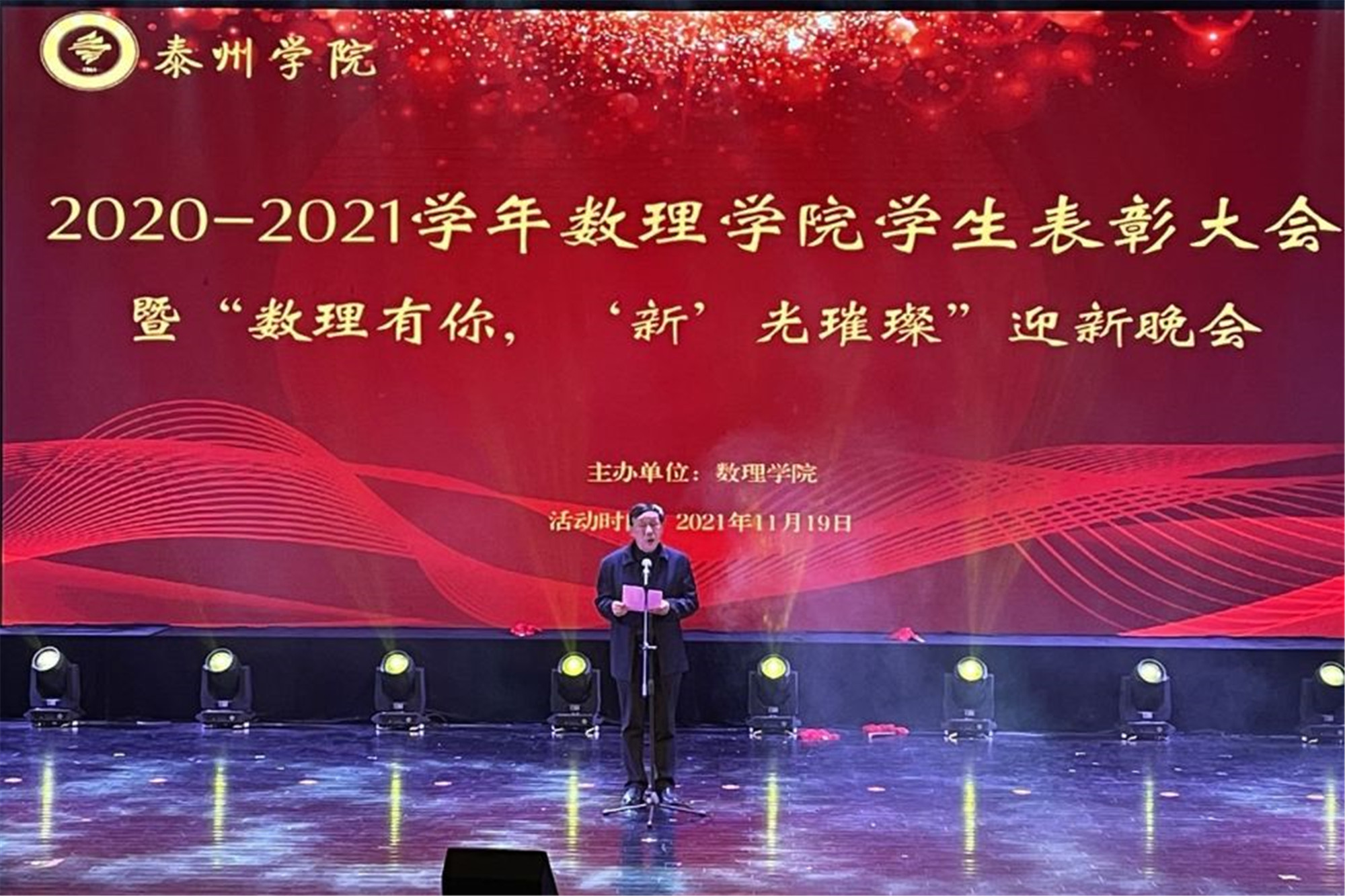 为表彰先进、树立典型,丰富校园文化生活,11月19日晚,数理学院在大学生活动中心举办2020-2021学年数理学院学生表彰大会暨“数理有你,新光璀璨”迎新晚会。校党委常委、副校长张曙光出席本次活动。