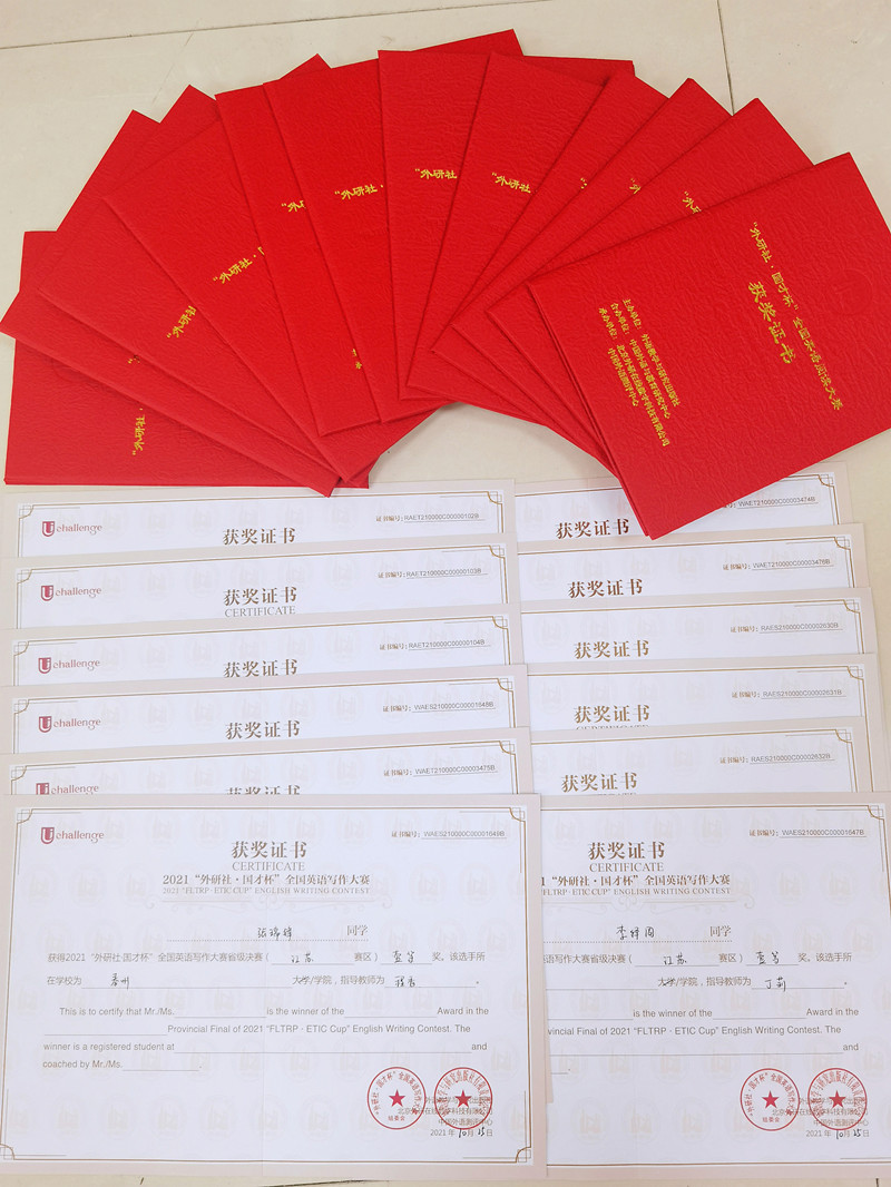 近期,2021年“外研社·国才杯”全国英语写作、阅读、演讲大赛江苏赛区决赛在江苏南京落下帷幕。bat365外国语学院张瑞锋、李绎周、张春利三位同学获得英语写作一等奖,王姝涵、陈欣两位同学分获演讲、阅读二等奖,范诗雨、李绎周分获演讲、阅读三等奖,王姝涵获得阅读优胜奖,获奖层次、获奖人数和全省排名均取得历史性突破。