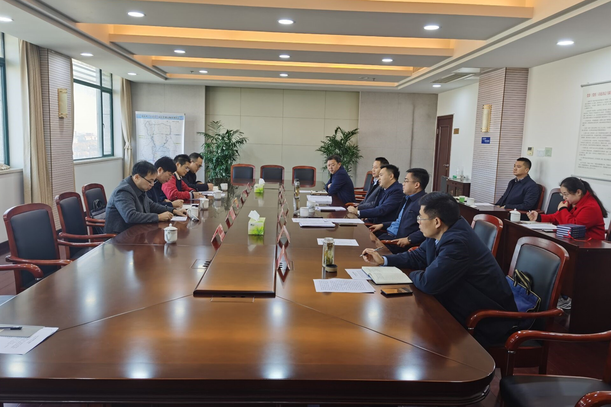 徐小兵介绍了学校物流管理专业建设情况及调研目的。丁永巍介绍了市交通运输局的各部门业务及全市物流运输的现状及发展趋势。各部门负责人结合本部门职能介绍了相关情况。双方就泰州市物流业发展前景、城乡物流一体化、多式联运、绿色货运配送、网络货运等话题进行了交流与讨论。