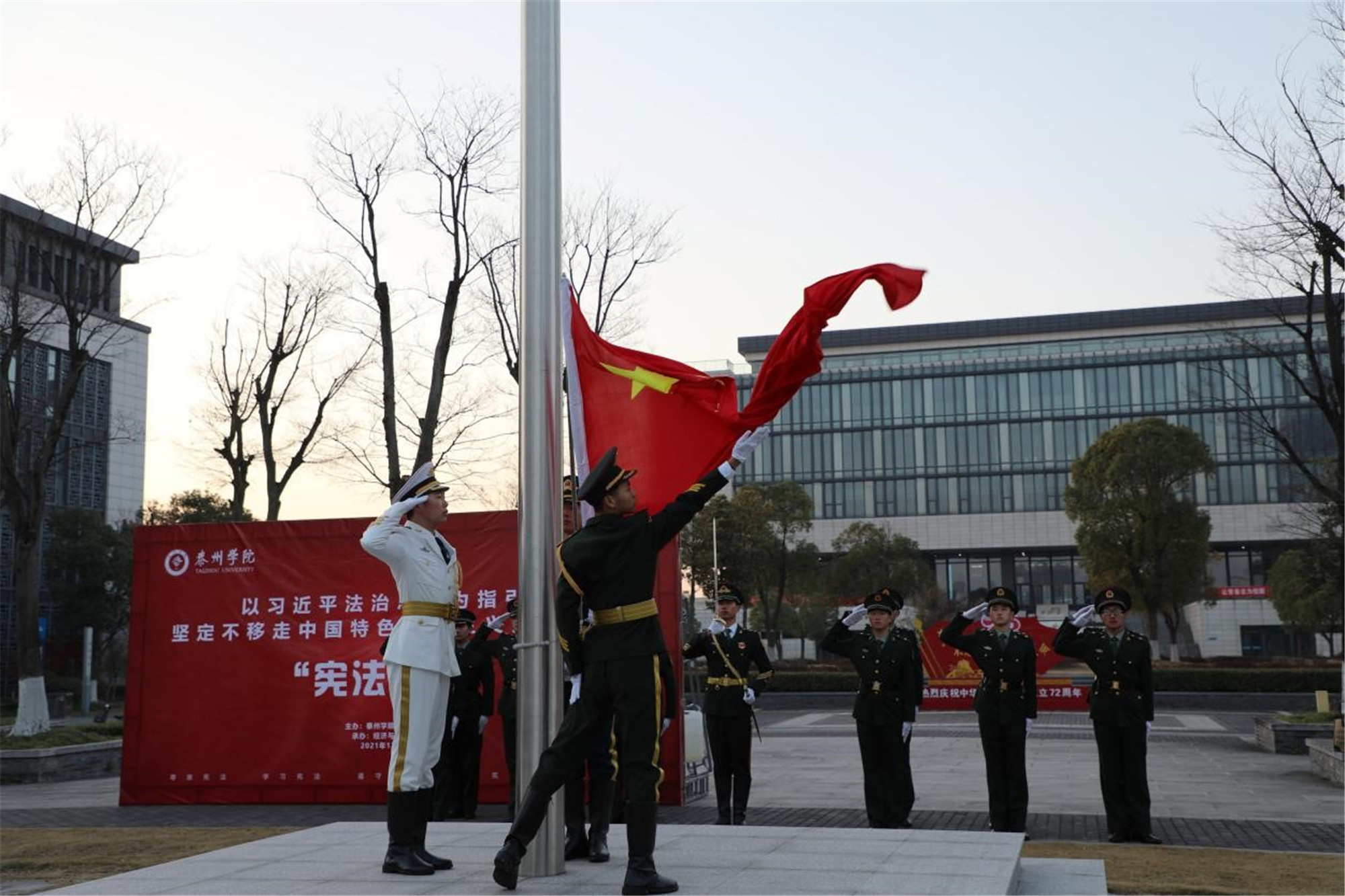 12月3日清晨,经济与管理学院300余名师生齐聚胡瑗广场,举办国家宪法日晨读活动。校党委副书记邓友祥,校党委常委、宣传部部长吕林出席活动。