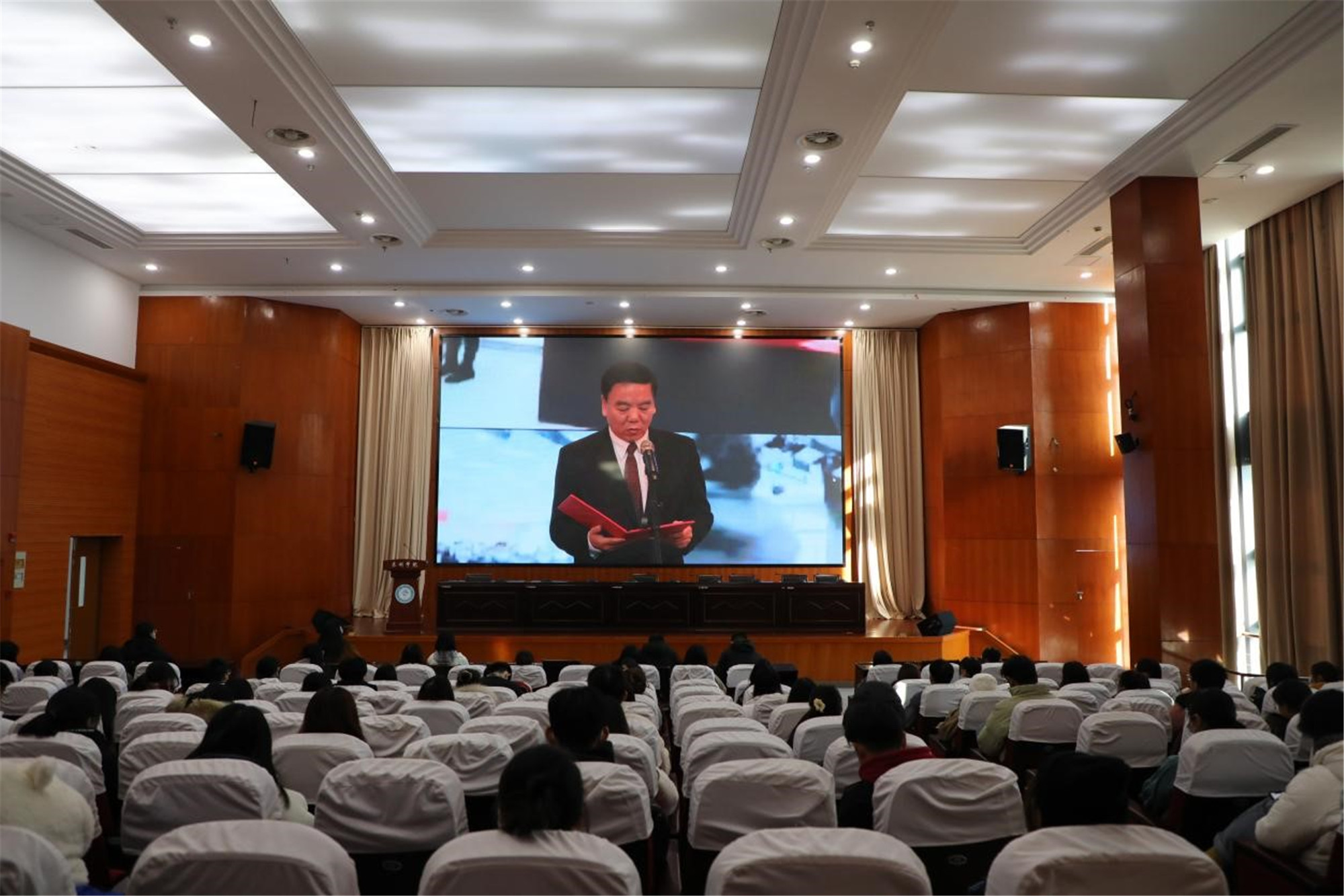 邓友祥作国旗下讲话,强调宪法宣传和大学生法治教育重要性。他要求全校上下进一步提高政治站位、深入开展宪法学习宣传;创新方式方法,做好大学生宪法学习教育;加强统筹协调,全面推进“八五”普法工作。要将法治教育与道德教育相结合,与社会主义核心价值观教育相结合,弘扬中华传统美德,培育社会公德、职业道德、家庭美德、个人品德,提高全民族思想道德水平,为全面依法治国创造良好人文环境。