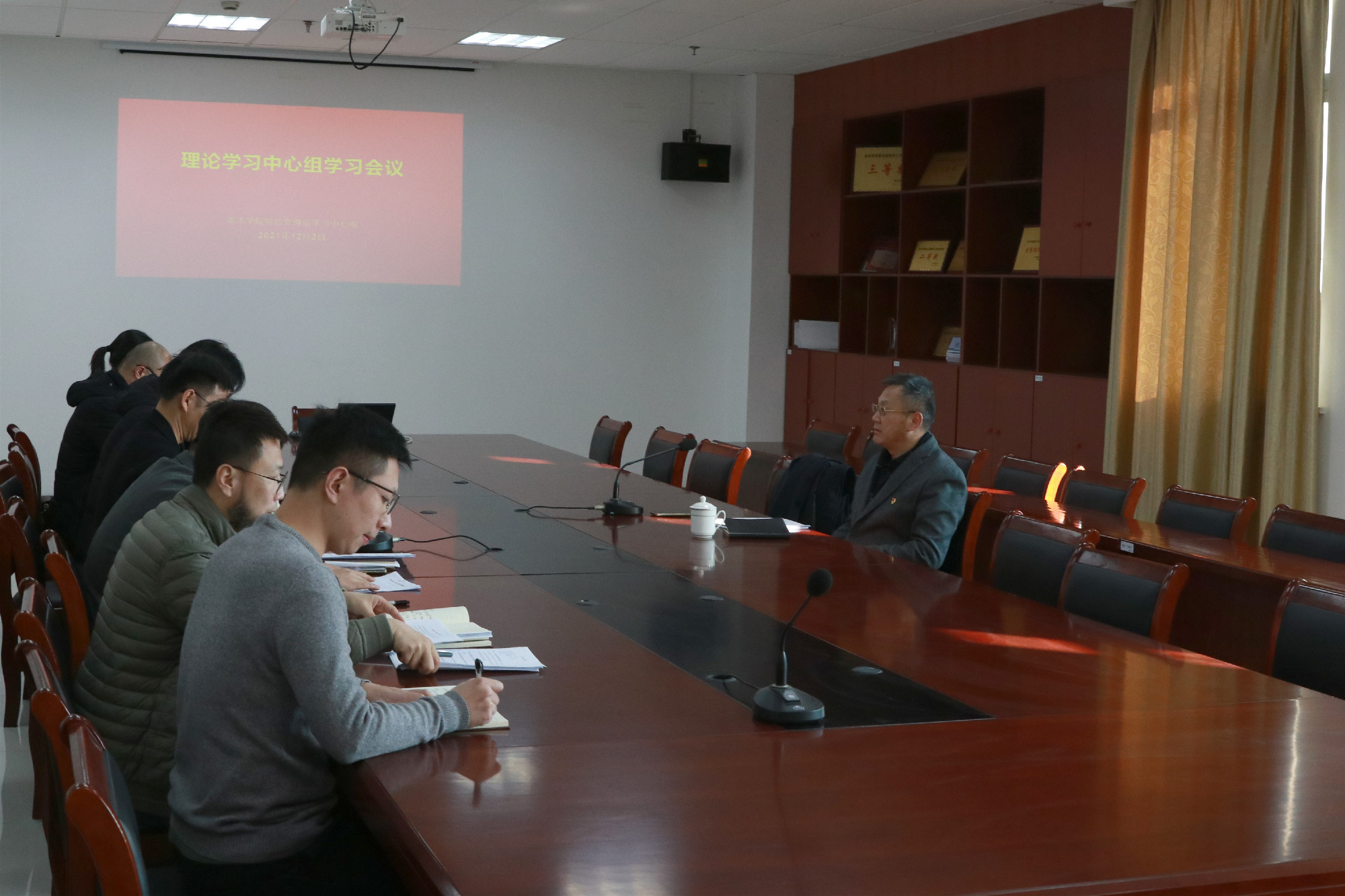 12月2日下午,校党委书记赵茂程巡学旁听美术学院党总支理论学习中心组集体学习会,美术学院院长黄平、各系主任、各支部委员参加旁听,美术学院党总支书记吴新林主持会议。