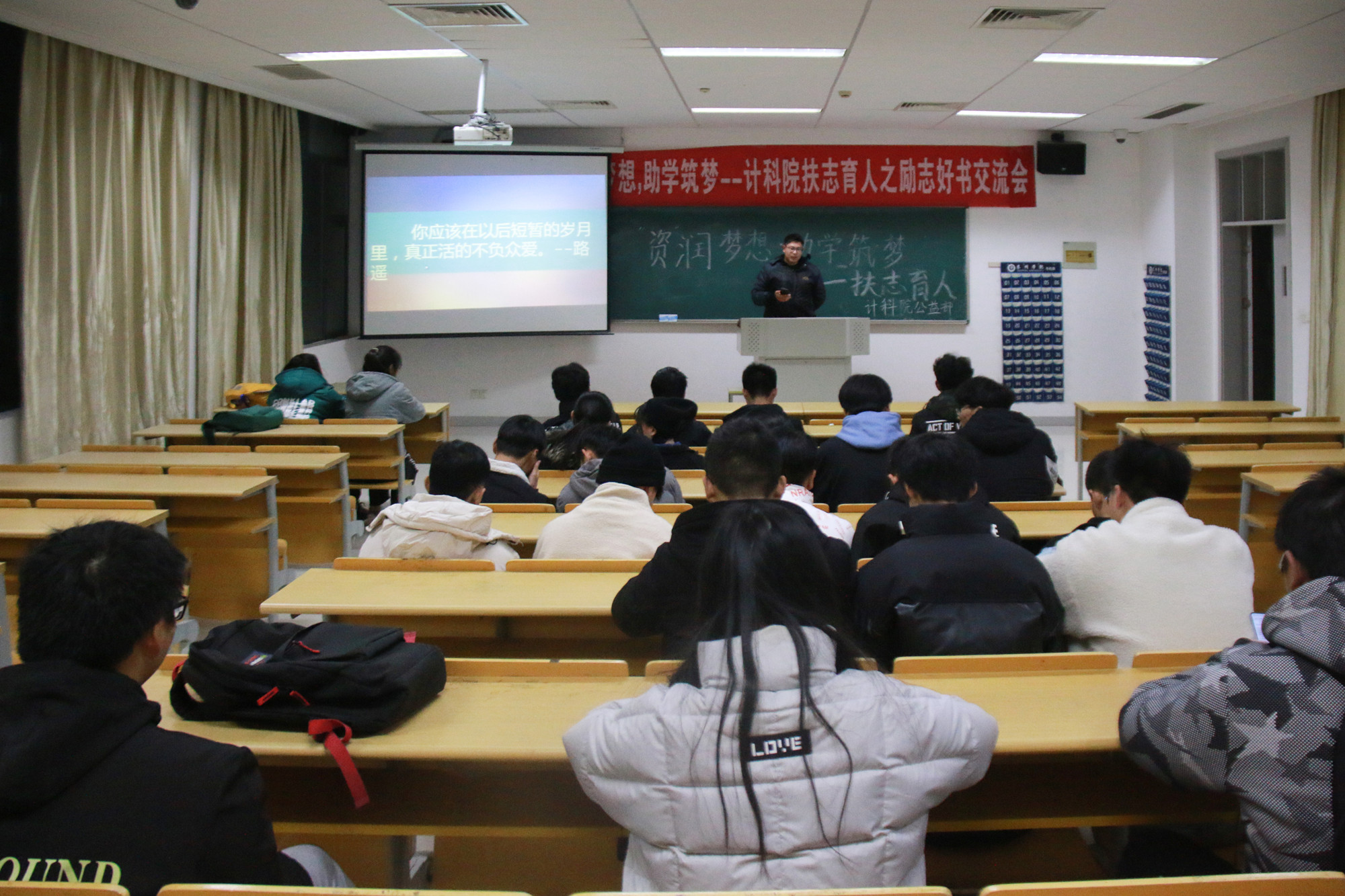 为做好感恩励志教育,强化资助育人实效,12月5日晚,计算机科学与技术学院在教学楼3407举办了“资”润梦想,助学筑梦——扶志育人之励志好书交流会。