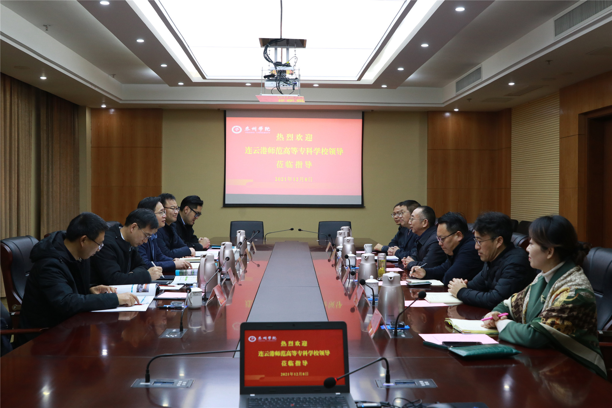 12月8日上午,连云港师范高等专科学校副校长丁红星一行5人来bat365调研。bat365党委副书记、副校长王美林接待来宾,办公室、教务处、教育教学评估中心、国有资产管理处、团委等部门负责同志参加交流。