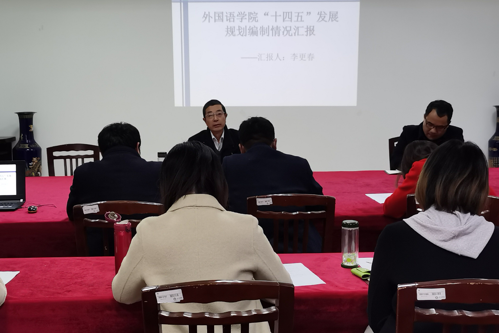 外国语学院院长李更春对学院的办学思路、定位与目标,学院“十四五”发展主要指标,以及《规划》各章节的主要内容作出了详细说明。与会人员围绕前期审阅过程中发现的问题一一提出了修改意见和建议。