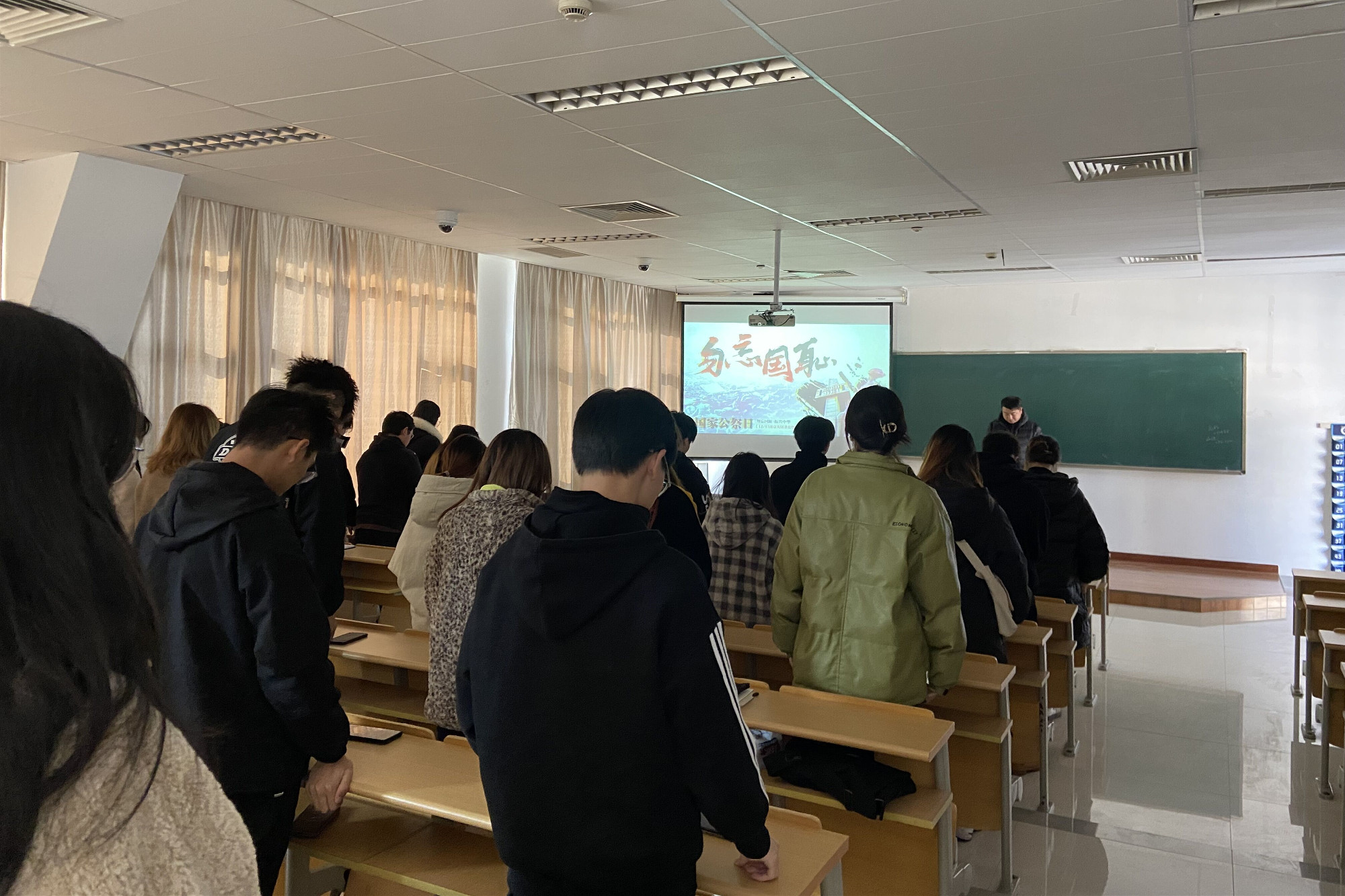默哀毕后,美术学院党总支副书记、副院长、关工委主任于晶晶给2019级环境设计1、2班学生做“铭记历史,勿忘国耻”微党课。他详细介绍了国家公祭日的来历和意义,激励新时代大学生进一步弘扬爱国精神,勿忘国耻,砥砺奋斗。