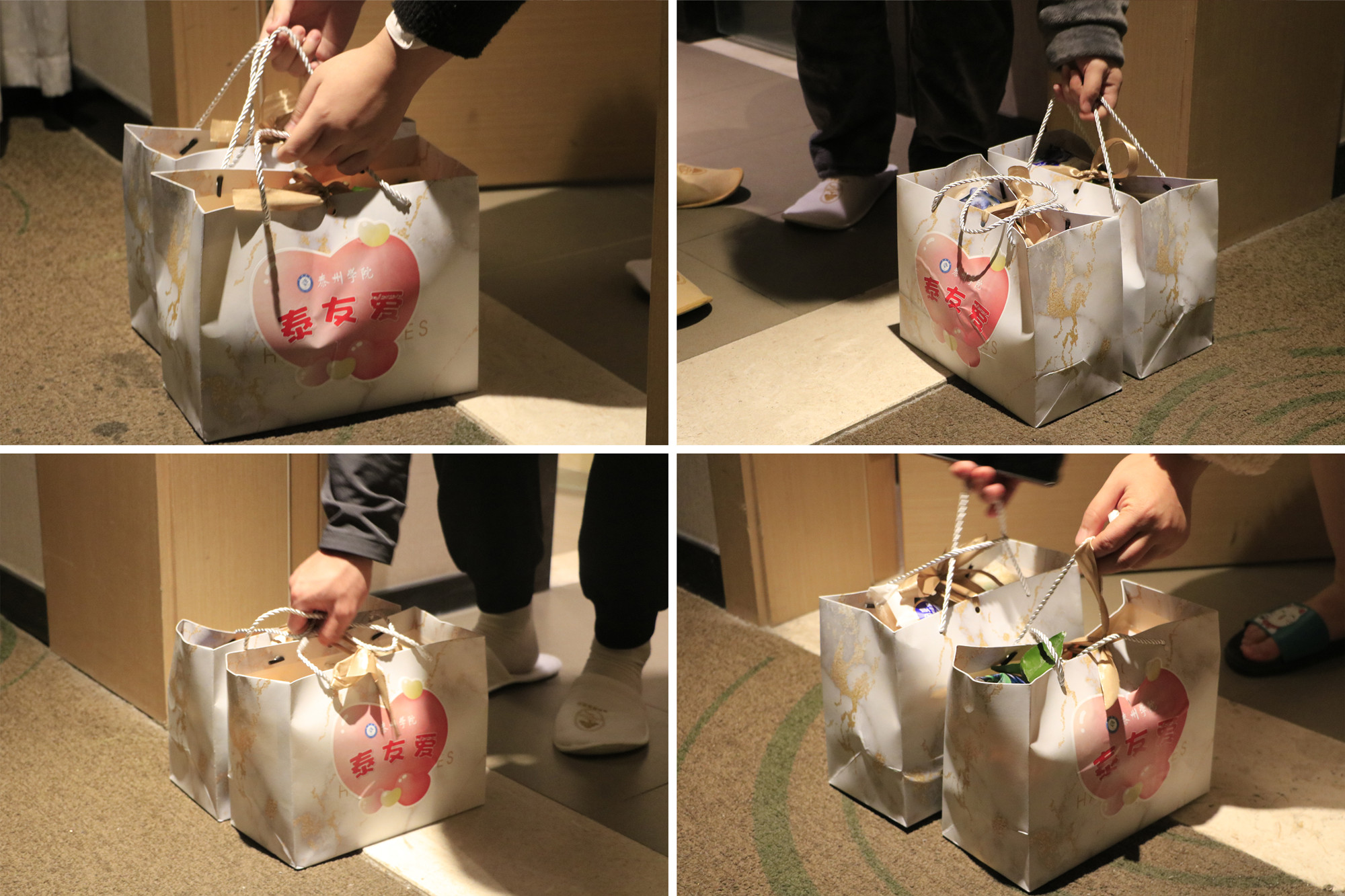在校内外隔离观察点,一袋袋贴有“泰友爱”标贴的爱心礼包由工作人员轻轻地放在每个房间的门口。“谢谢学校!”“谢谢老师!”“谢谢工作人员!”是每位被“暖”到的泰院学子们最真挚的表白。