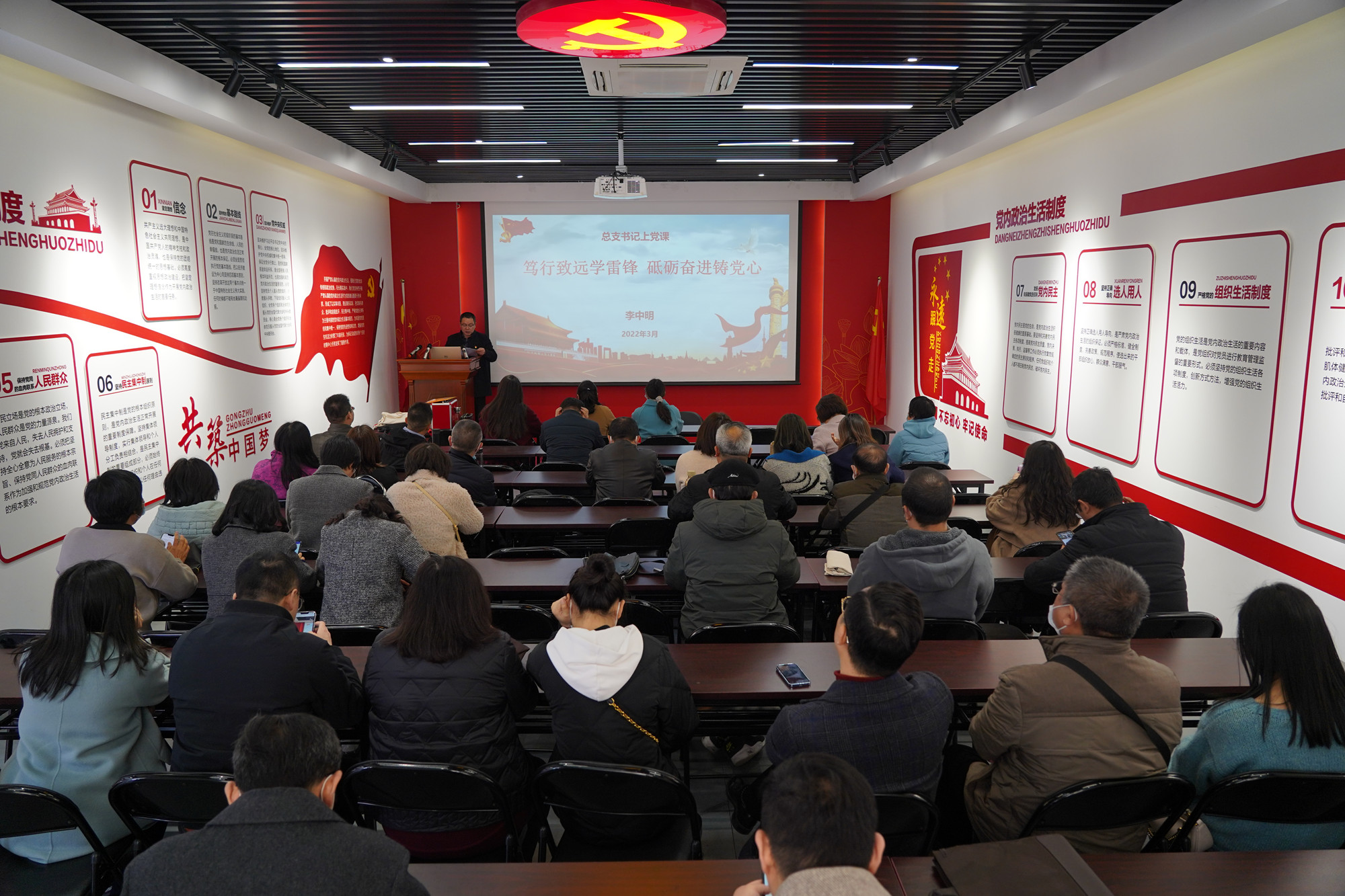 李中明给全体党员上党课,强调要继续发扬共产党员坚持真理、善于思考、求真务实的优良作风,要真正做到一心为公,一身正气。