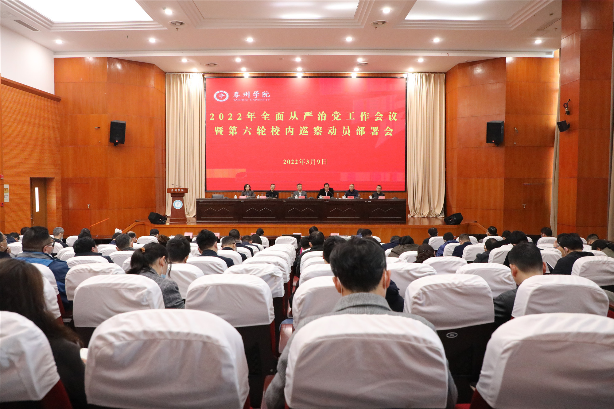 3月9日下午,bat365召开2022年全面从严治党工作会议暨第二届党委第六轮校内巡察动员部署会。校党委书记赵茂程出席会议并讲话,校党委副书记、校长徐向明主持会议。在泰校领导,党委委员,纪委委员,全体中层干部,二级党组织纪检委员,巡察组全体成员参加会议。