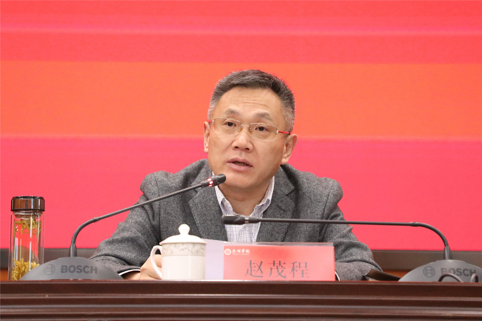 赵茂程在讲话中指出,过去的一年,校党委切实发挥领导核心作用,以党的政治建设为统领,围绕省委巡视整改和教育部本科教学工作合格评估整改要求,坚持立德树人,加强内涵建设,一刻不停推进党风廉政建设和反腐败斗争,做到全面从严治党主体责任和监督责任同步发力,“点题整治”与完善制度同步发力,严肃执纪问责与防范化解重大风险同步发力,以案促改与倡导清风正气同步发力,学校政治生态持续向好,为推进学校事业高质量发展提供了坚强的政治保障。全校纪检监察工作稳中求进、富有成效,被授予“江苏省纪检监察系统先进集体”称号。