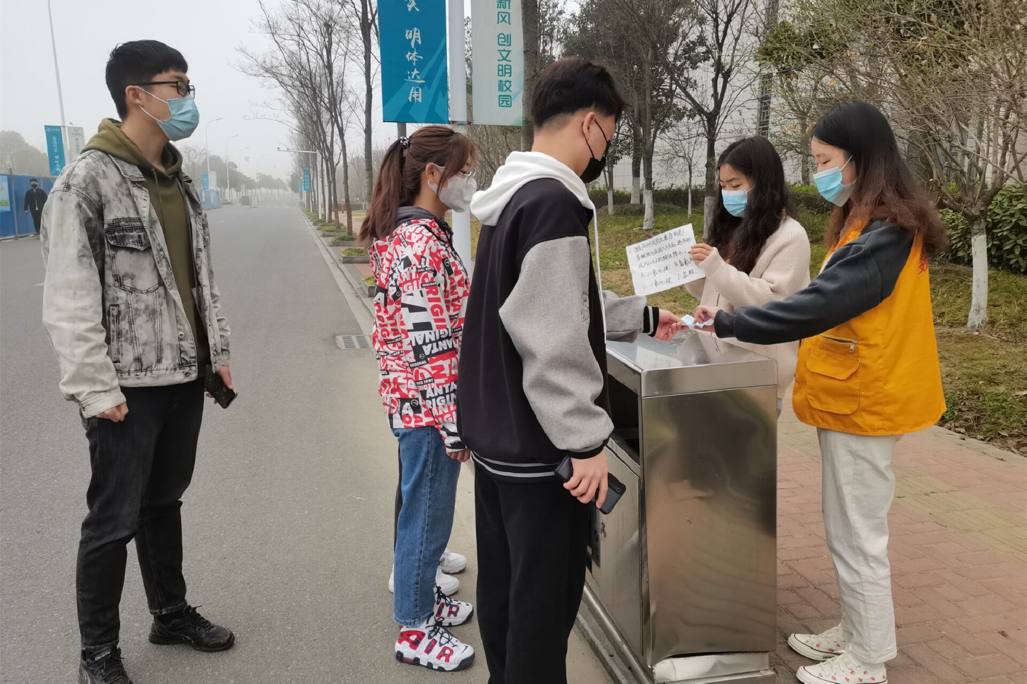 为坚决落实疫情防控管理要求,徒步活动共分为九个批次有序开展。上午七时,参与队伍在操场起点处领取集章卡,同学们按照电子地图及规定路线,徒步校园一圈。校园内共设8处打卡点,通过绿色、低碳、环保等内容的知识问答,集章兑换小礼品。