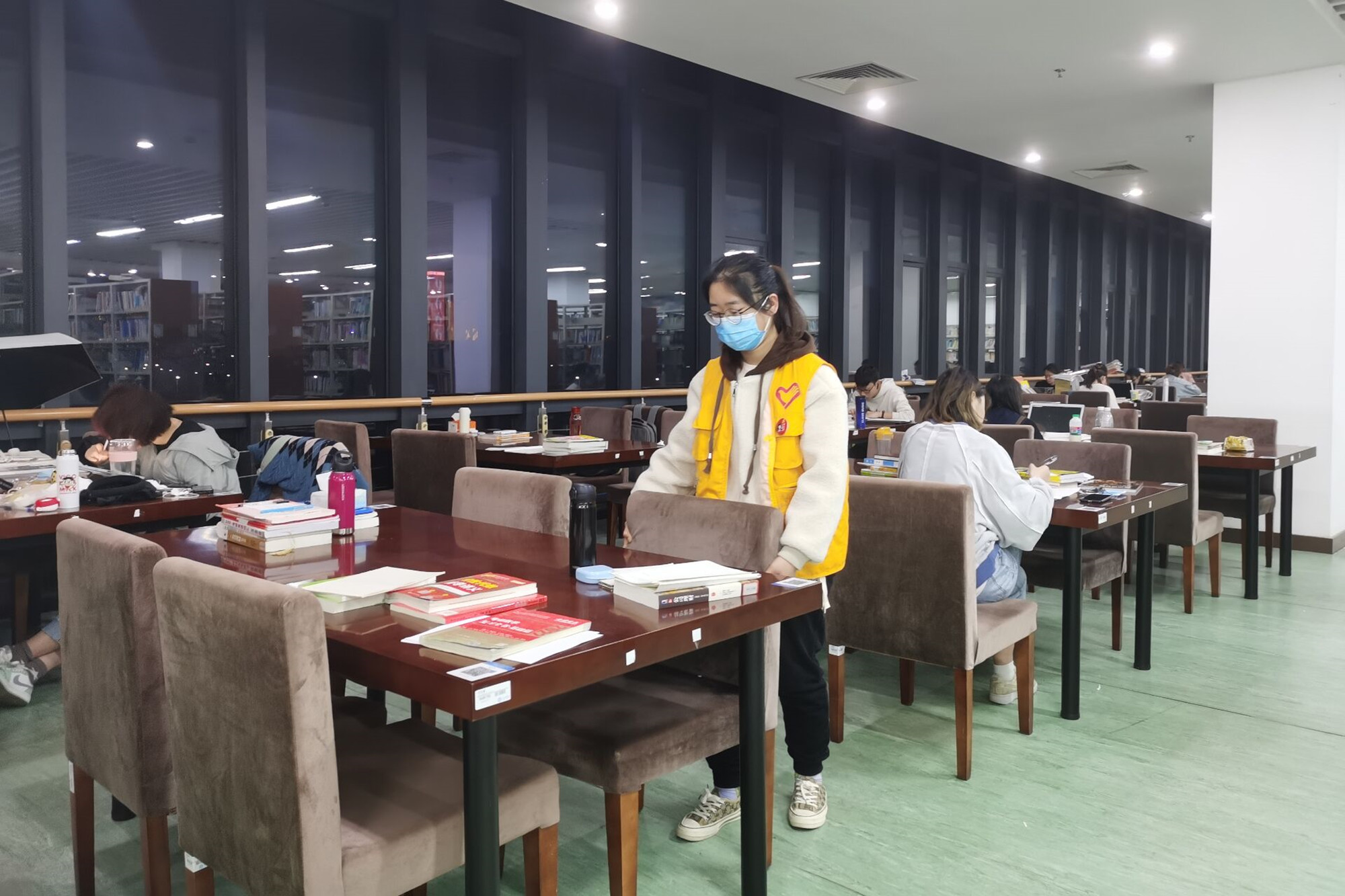 冬去春来,万物复苏,志愿者们来到图书馆周边清理杂草、拓荒种植,他们用辛勤的汗水浇灌心中的梦想,用实际行动向雷锋同志致敬。志愿者们还将图书馆自习室的桌椅摆放整齐,对书桌上凌乱的书籍进行了整理,为给大家营造良好的学习氛围。疫情防控期间,志愿者们走进了食堂,成为食堂引导员,引导就餐同学在有序排队,保持一米线距离,为疫情防控做贡献。