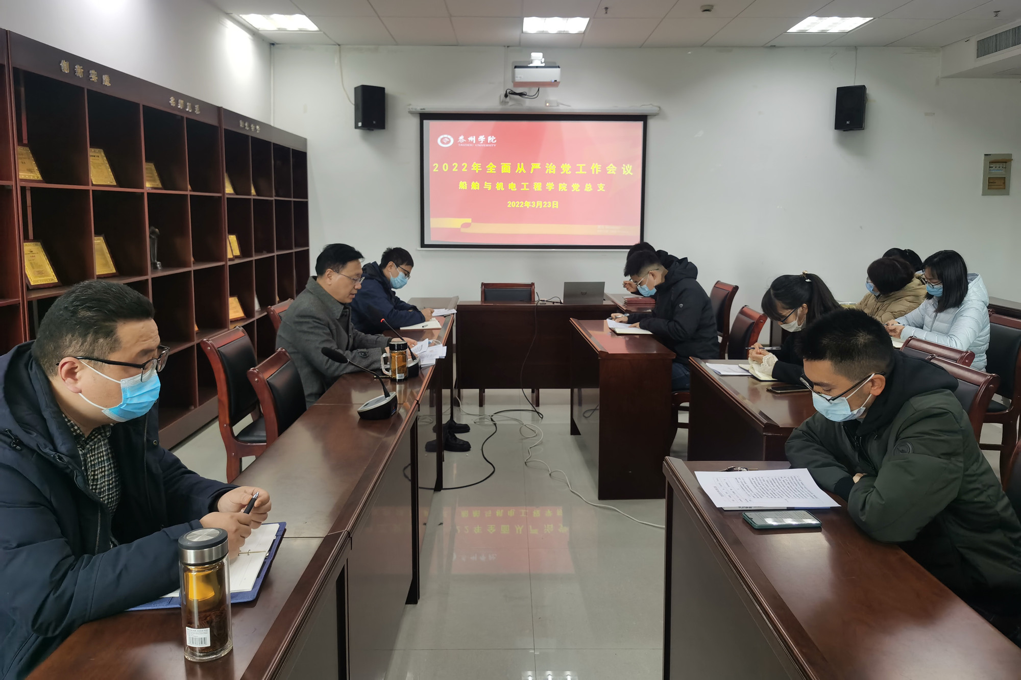 3月23日下午,船舶与机电工程学院党总支召开全面从严治党工作会议,全体教师党员参加会议。会议由党总支书记陈克宏主持。