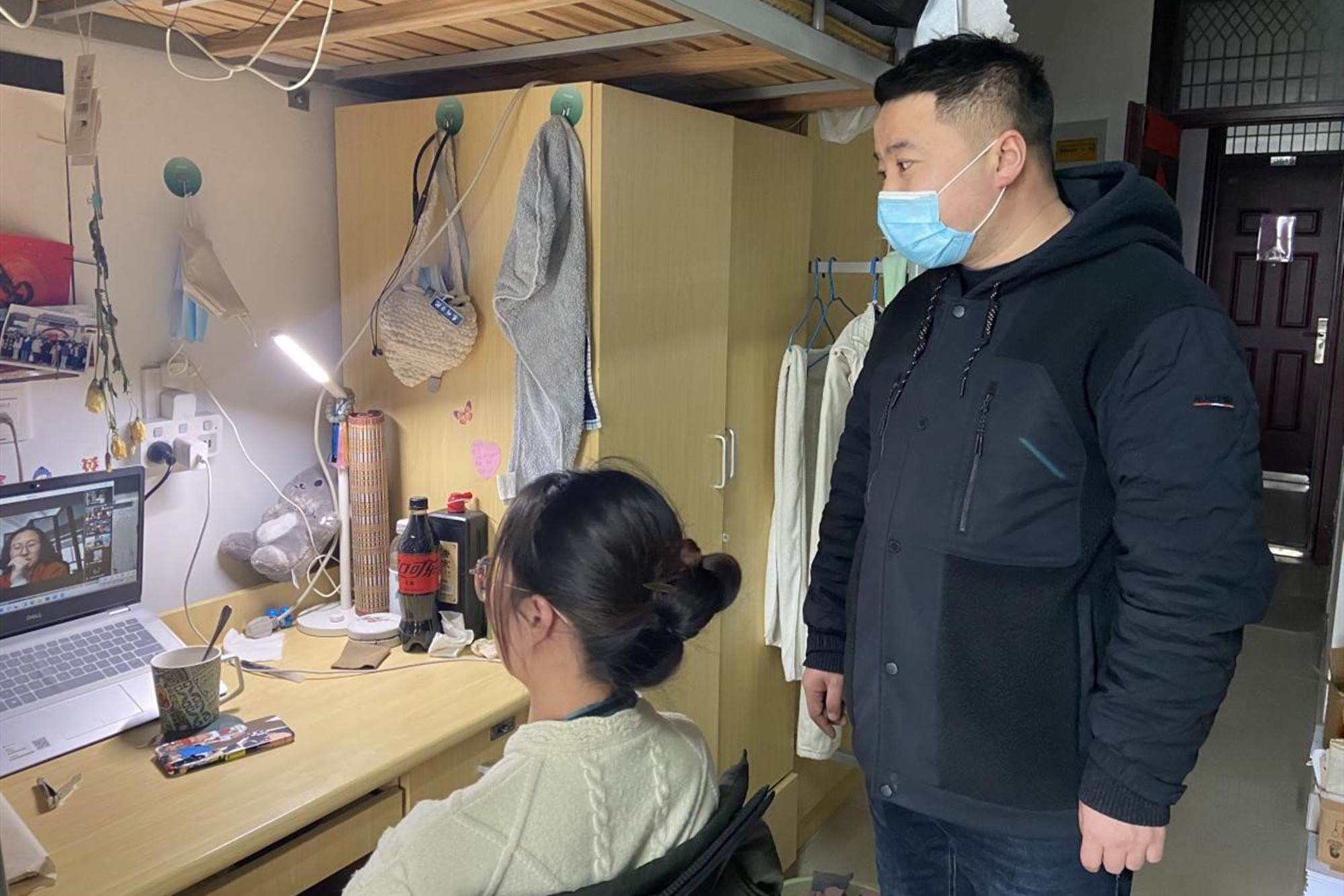 走访中,党员干部仔细检查了宿舍安全卫生,主动关心同学们的生活学习状况,及时记载学生反馈的难点问题,提醒同学们要提高个人疫情防控意识,落实好疫情防控具体要求,绷紧疫情防控这根弦,坚决守牢疫情防控底线。吴新林提醒同学们有困难要及时和老师们联系,加强沟通,共同努力把疫情对生活和学业的影响降到最低。