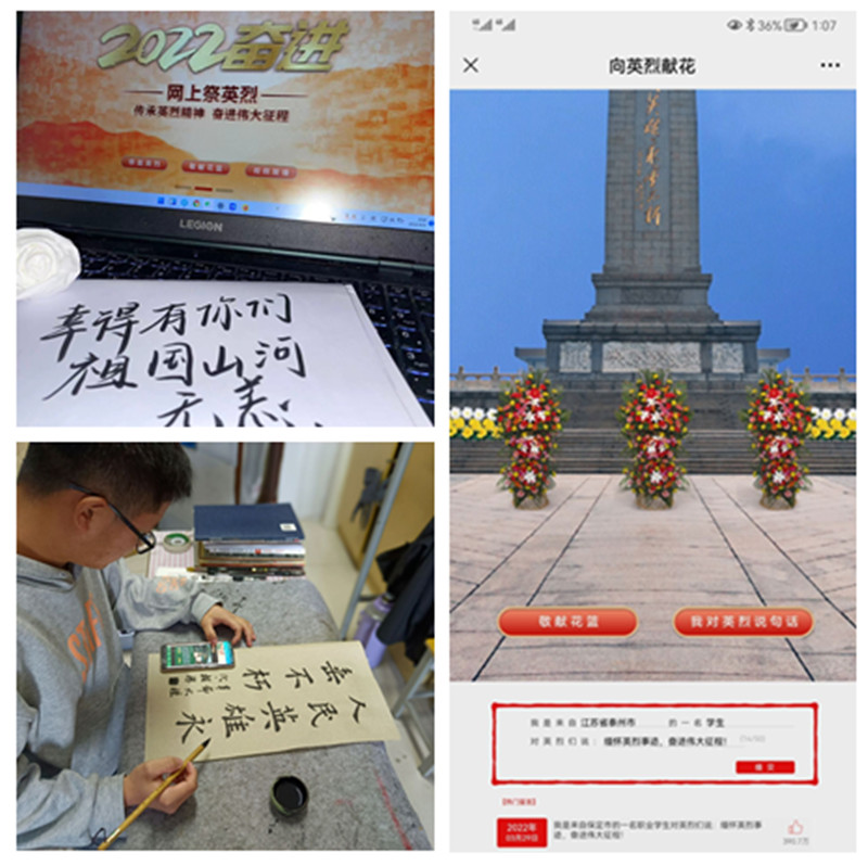 云寄语——追思人民英雄。书写感言,遥寄追思。全校各团支部自发在“泰青春”微信公众号上留言,写下让英烈精神融入血脉、励志青春的豪言壮语,深切缅怀革命英烈。