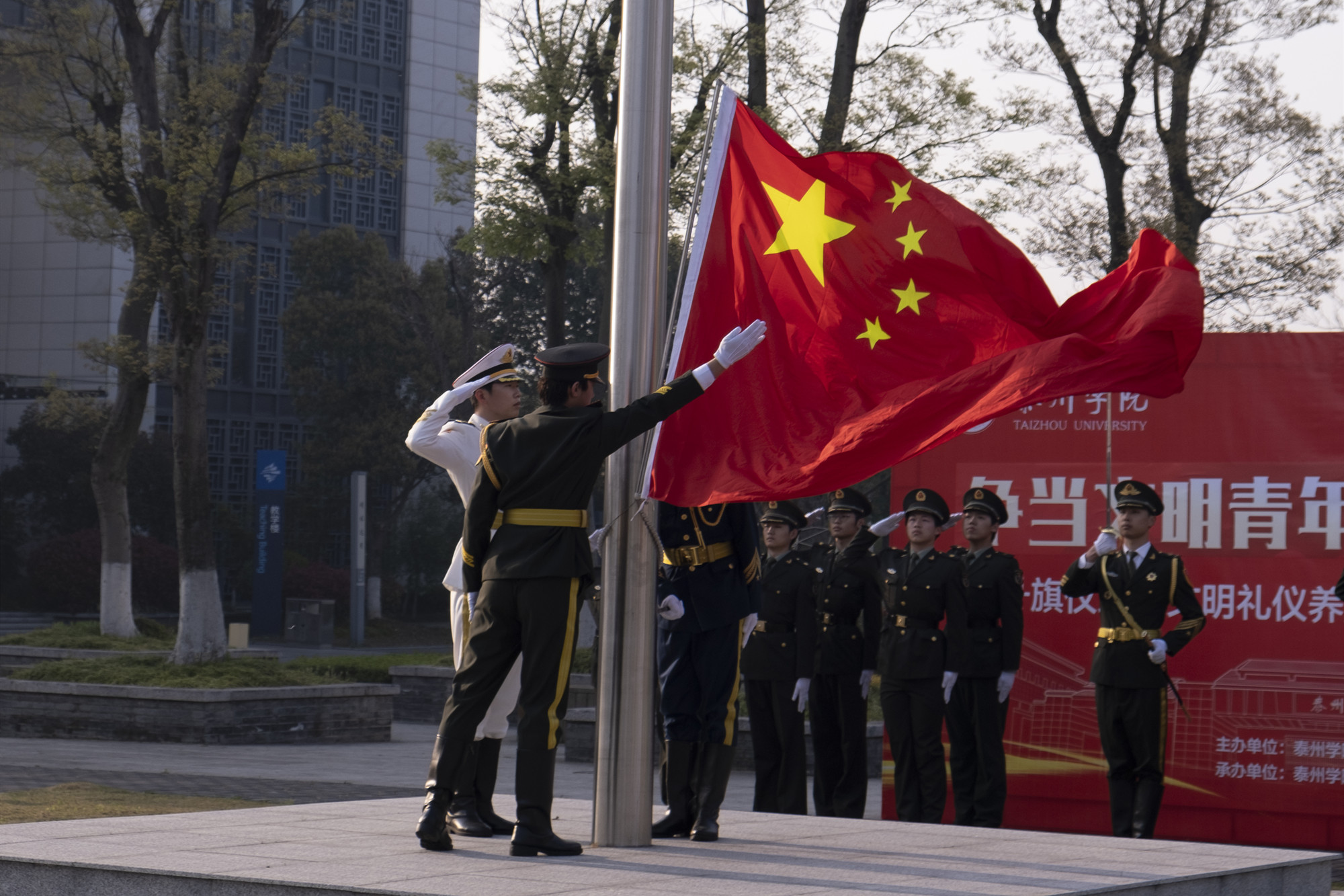 为进一步加强大学生理想信念教育和社会主义核心价值观引领,全面提高人才培养质量,4月6日上午7时,bat365在胡瑗广场举行“争当文明青年,汇聚青春力量”文明礼仪养成主题教育月活动开幕式暨升旗仪式。党委学生工作部、船舶与机电工程学院相关负责人,辅导员和部分党员、入党积极分子代表参加线下仪式,近四千余人在线上观看直播。本次活动由党委学生工作部主办,船舶与机电工程学院承办。