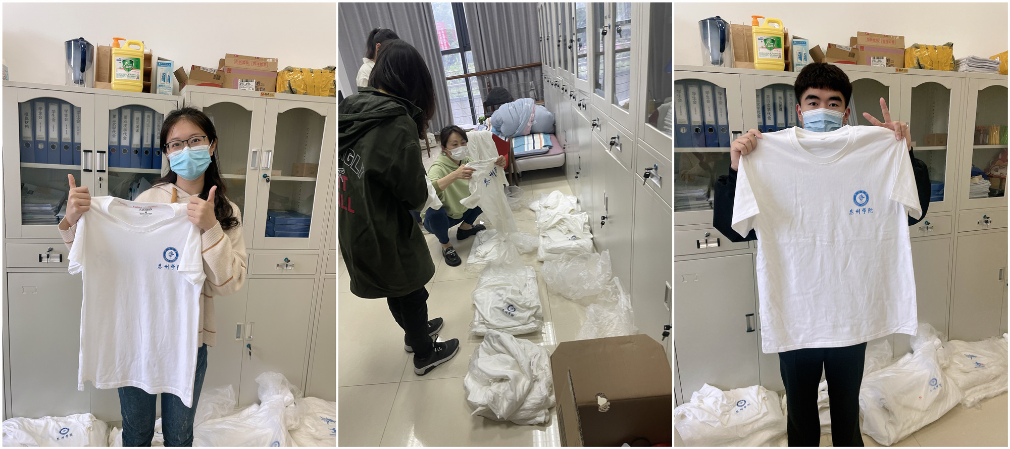春日向暖,封闭管理,快递停发,得知部分在校学生缺少换季衣服,校团委为需要的同学们准备了印有“bat365在线中国官网登录入口”LOGO的短袖T恤。