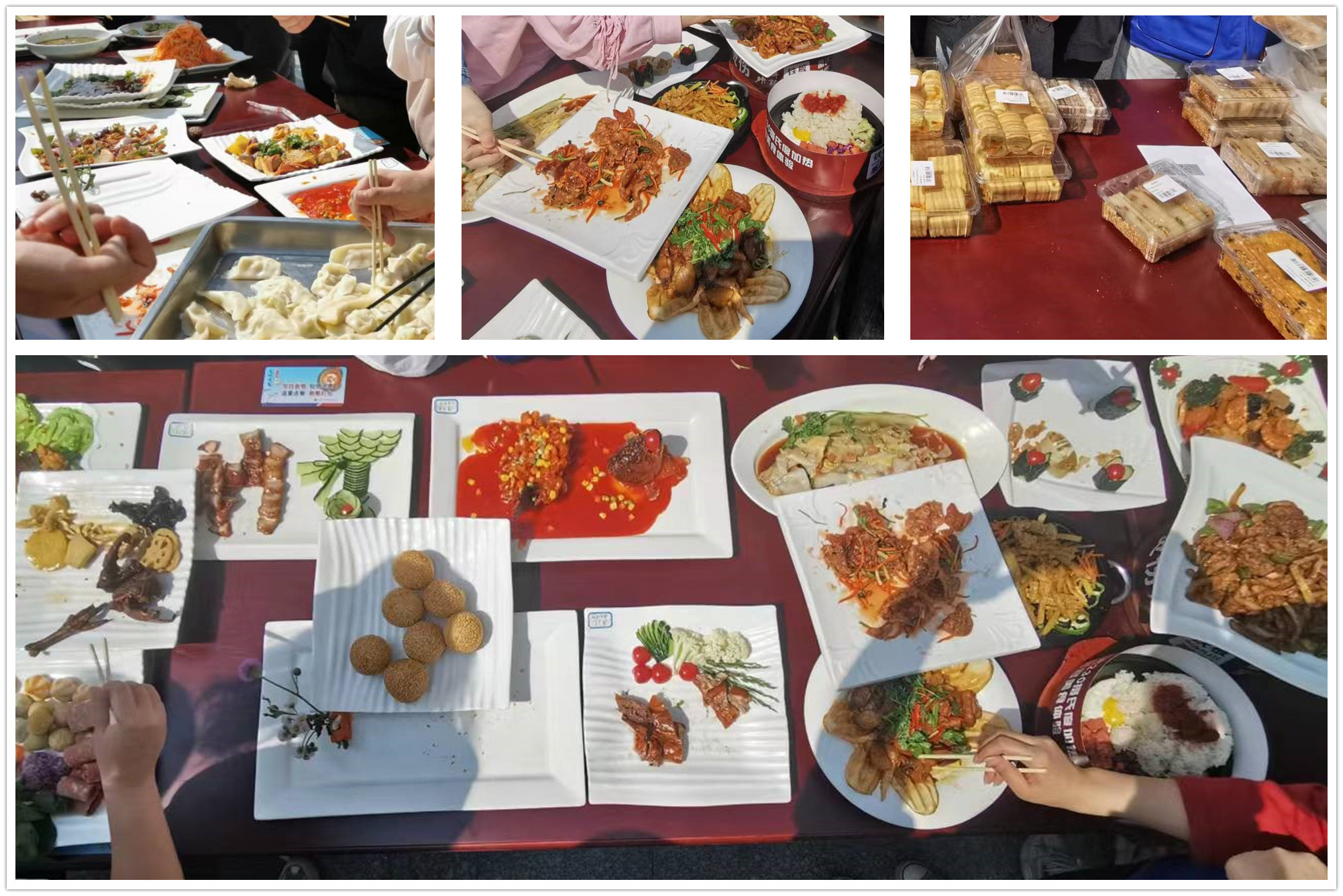 美食节组织了包饺子、赠饮、网红小吃集市和大厨拿手菜展示等活动,提供了奶茶、肉松小贝、泡芙、麻薯、天使卷、寿司、糖葫芦冷串等小吃,各食堂和超市也推出了各种美食。