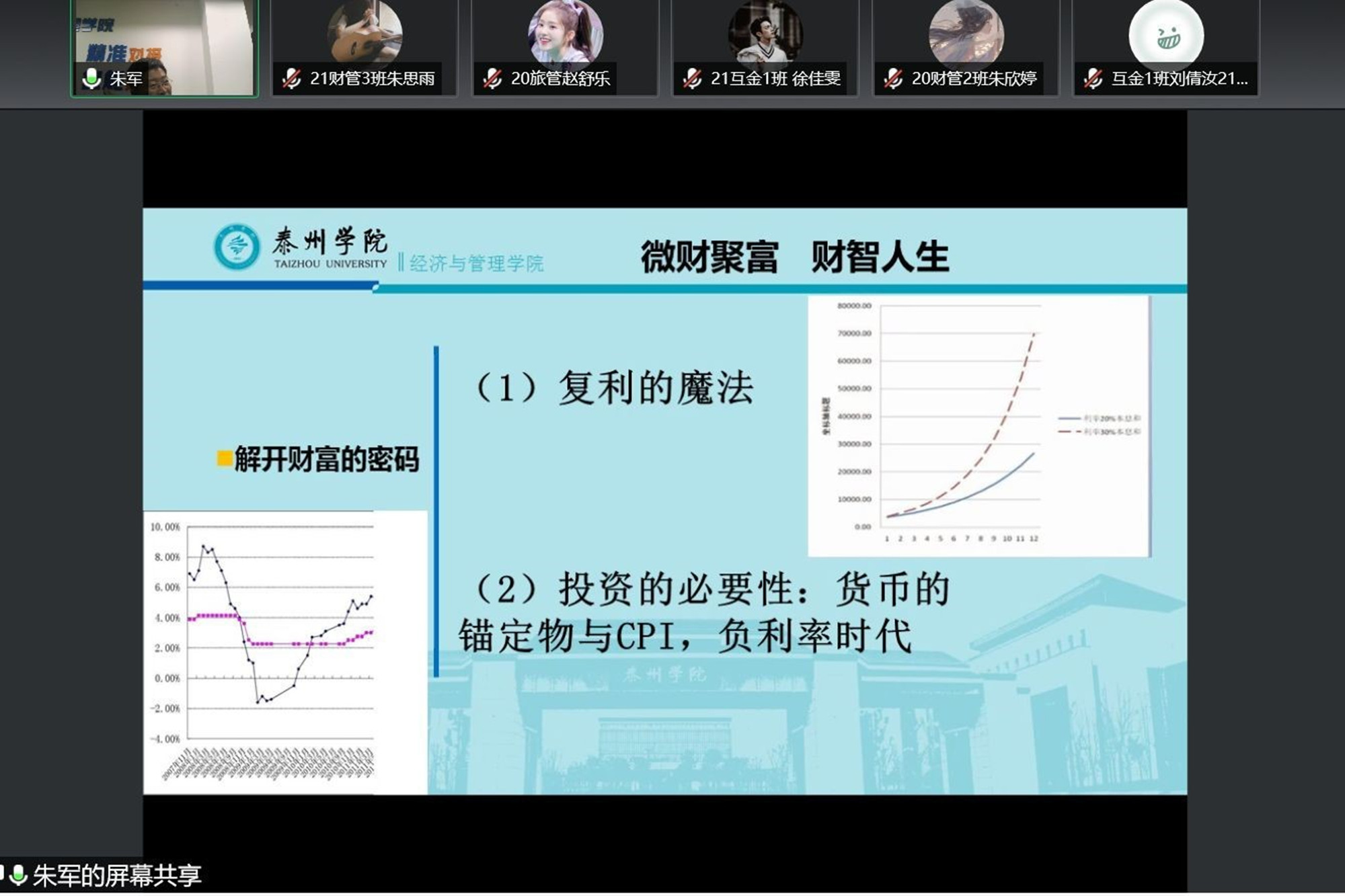 5月7日晚,经济与管理学院举办“微财聚富,财智人生”学术讲座活动。讲座由学院院长朱军博士主讲,160名同学通过线上或线下方式参加讲座。
