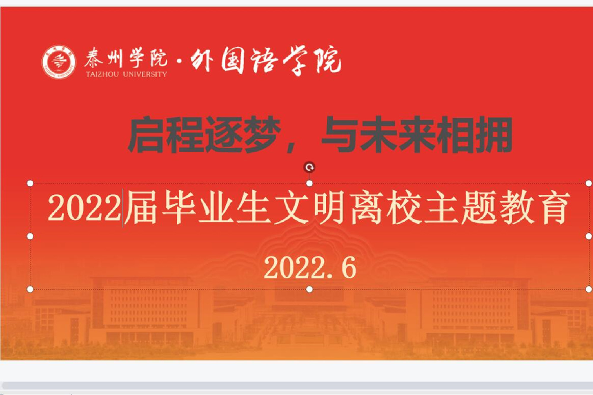 6月8日,外国语学院线上开展“启程逐梦,与未来相拥”文明离校主题教育,促进毕业生离校工作的“安全、稳定、文明、有序”。学院党总支副书记、副院长马永明、毕业班辅导员、班主任及所有毕业生参加。