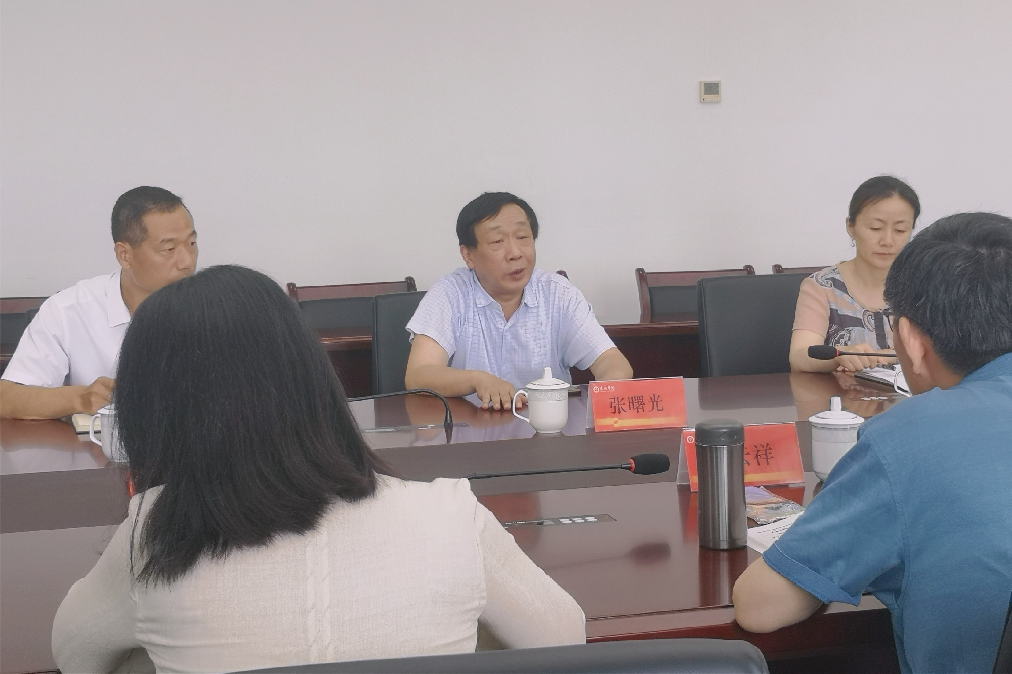 与会同志就普遍关心的图书馆数字资源建设、服务地方经济社会发展、读者服务方式方法等问题进行了深入探讨。会后,景云祥一行参观了图书馆特色馆藏区、教师阅览室、党建专区和胡瑗讲堂。