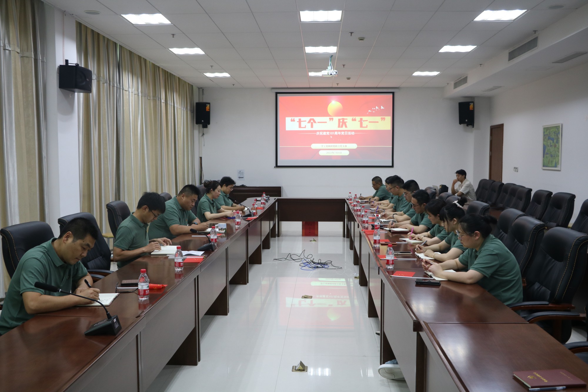 百年征程百年梦,喜迎华诞跟党走。为庆祝中国共产党成立101周年,继承和发扬党的光荣传统和优良作风,进一步增强支部的凝聚力和战斗力,7月1日下午,学工处和团委联合党支部在行政楼D2109会议室开展“七个一”庆“七一”主题党日活动。活动共包括学一段党史、交一份党费、温一遍誓词、忆一份初心、学一次思想、表一腔衷心、唱一首党歌等“七个一”活动。