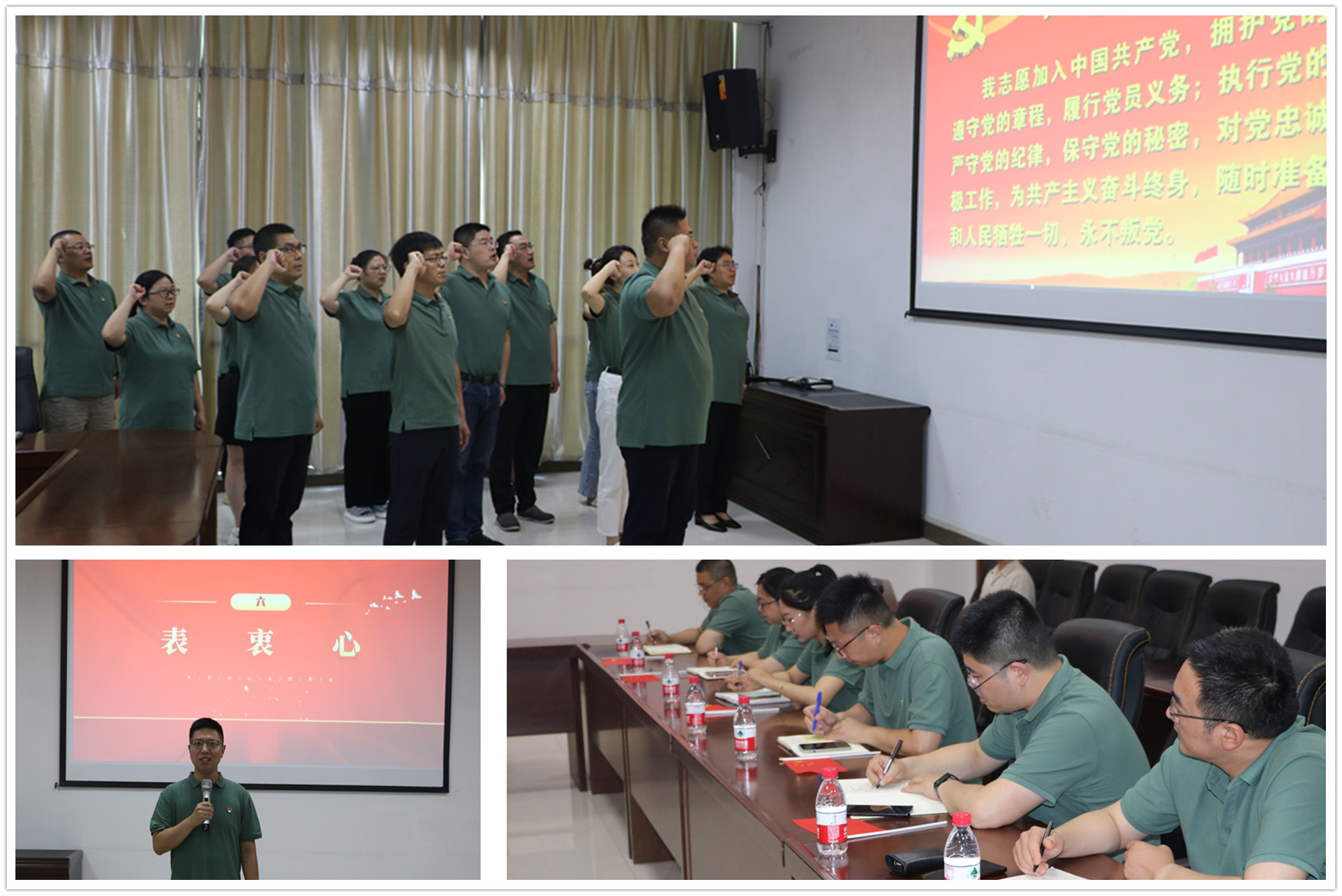 “没有共产党就没有新中国,没有共产党就没有新中国。共产党辛劳为民族,共产党他一心救中国,他指给了人民解放的道路,他领导中国走向光明……”全体党员挥动手中的五星红旗,志气高昂,用嘹亮的歌声为党和祖国献上深深的祝福。
